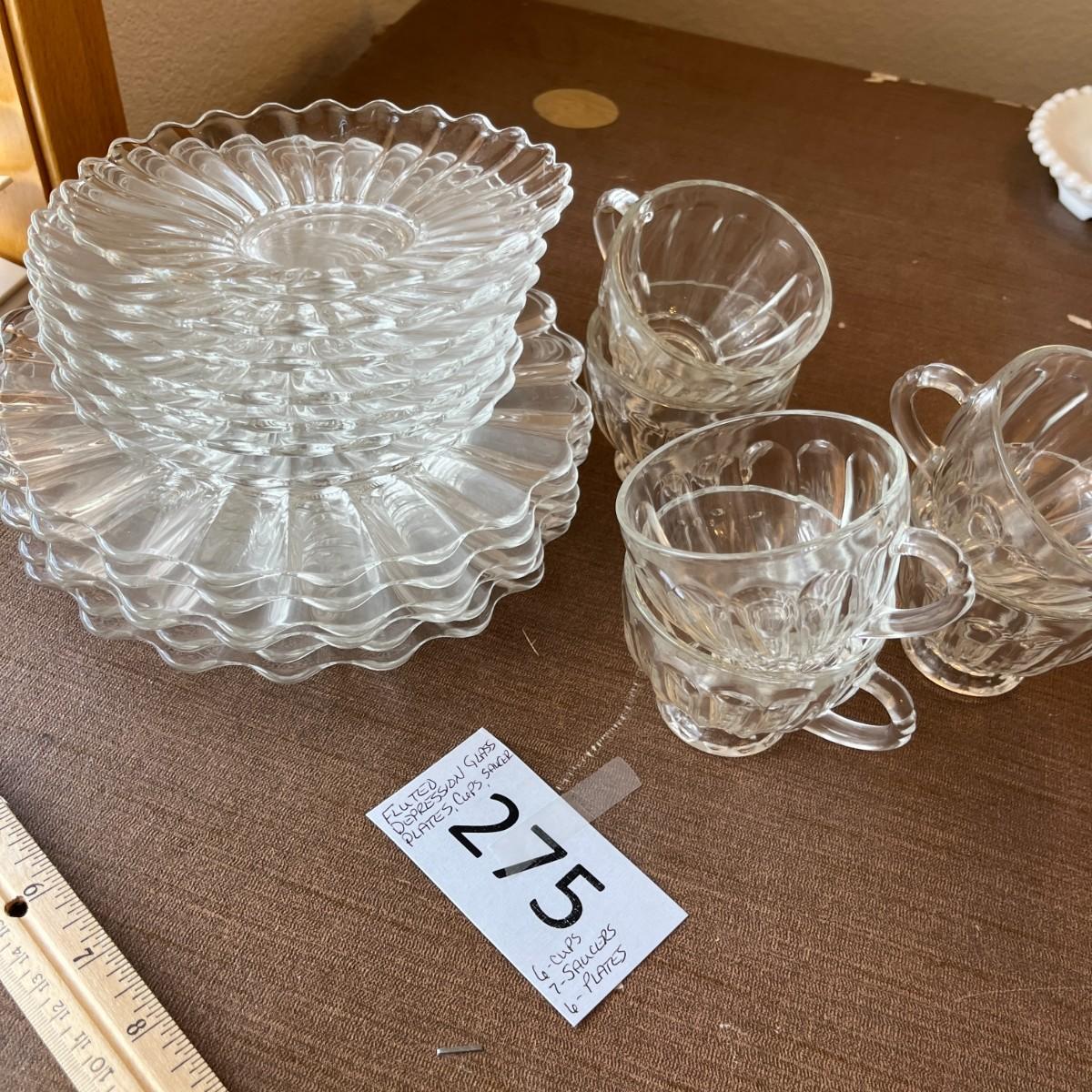 Fluted Depression Glass Plates, Cups and Saucers
