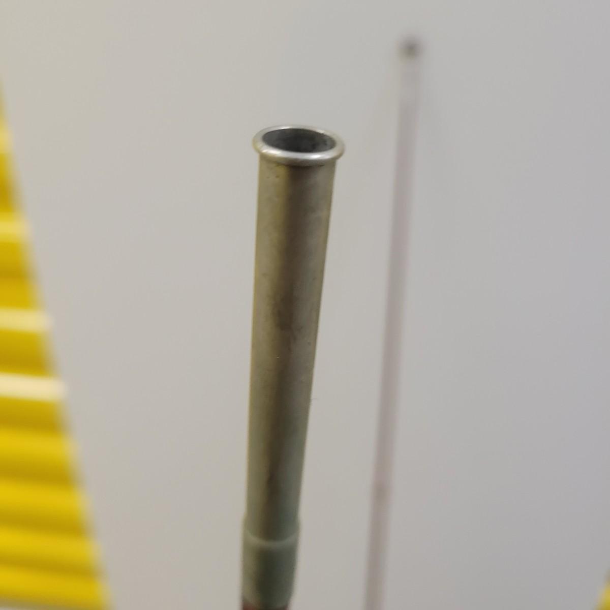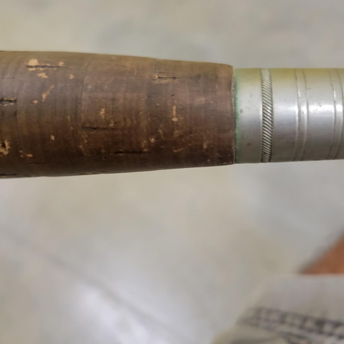 Vintage bamboo fly rod made by Heddon possibly in the 60s. Overall, rod is in good condition with all of it ferrules and wraps fully intact. Cork and down locking reel seat are solid. This is a 2 piece, 6' rod that feels like a 5wt. Varnish has gotten gooey on it and fibres are sticking. Includes a cloth bag. Shipping available