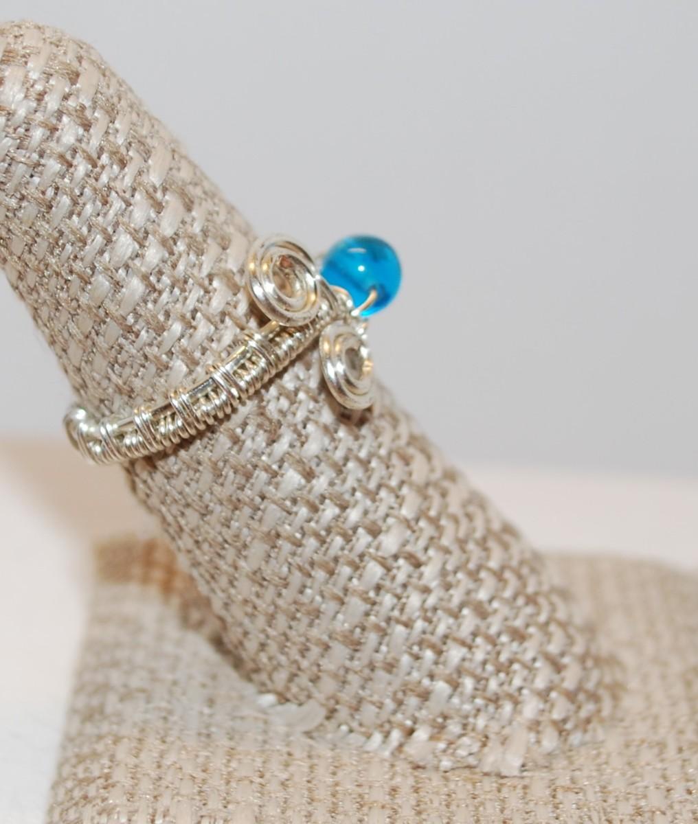 Size: 5 ¼ Fly Shape Design with Teal Colored Stone on Silver Tone Wired Setting Ring (2.5g)