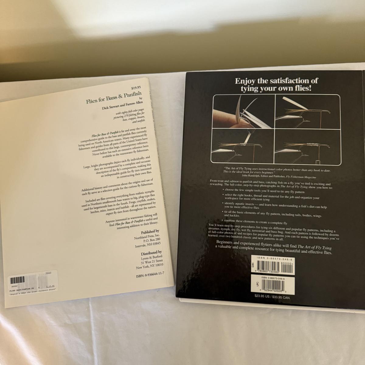 This lot contains six books and magazines on fly tying and an assortment of supplies as well as two organizers. For the books we have The Art of Fly Tying by the Hunting and Fishing Library, Fly Fishing Equipment and Technique by Jeannot Ruel, The Art of Tying the Bass Fly by Skip Morris, and Flies for Bass & Panfish by Dick Steward and Farrow Allen. See pictures for magazine titles. For supplies we have a variety of feathers, some died fur, float foam, rubber, lead eyes, tinsel, and a variety of chenille. These supplies come in two different plastic organizers. See pictures for full inventory. Shipping available.