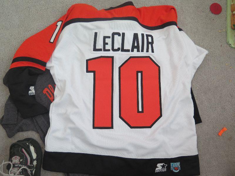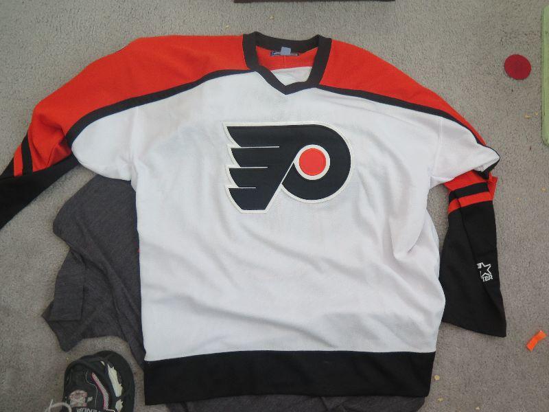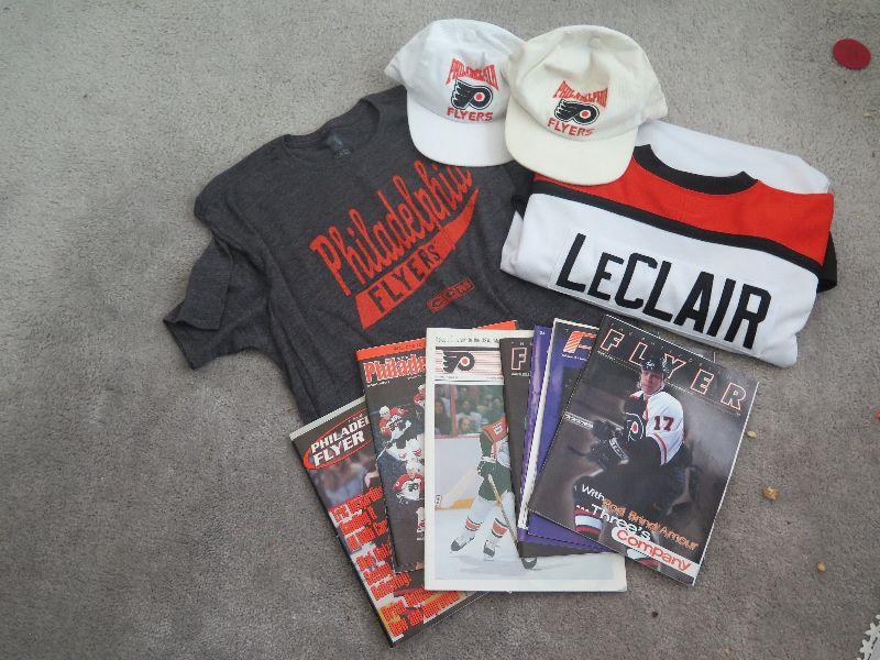Flyers magazines, hats and shirts. LeClair Starter shirt is an XL and is in new condition. **Please read Terms and Conditions before placing a bid. Pick up is Wednesday July 31st, from 2 pm to 7pm in Sicklerville. All sales are final. All sales are as is, where is. Please review all photos. Any props included in photos are not included in listing. All measurements are approximate.