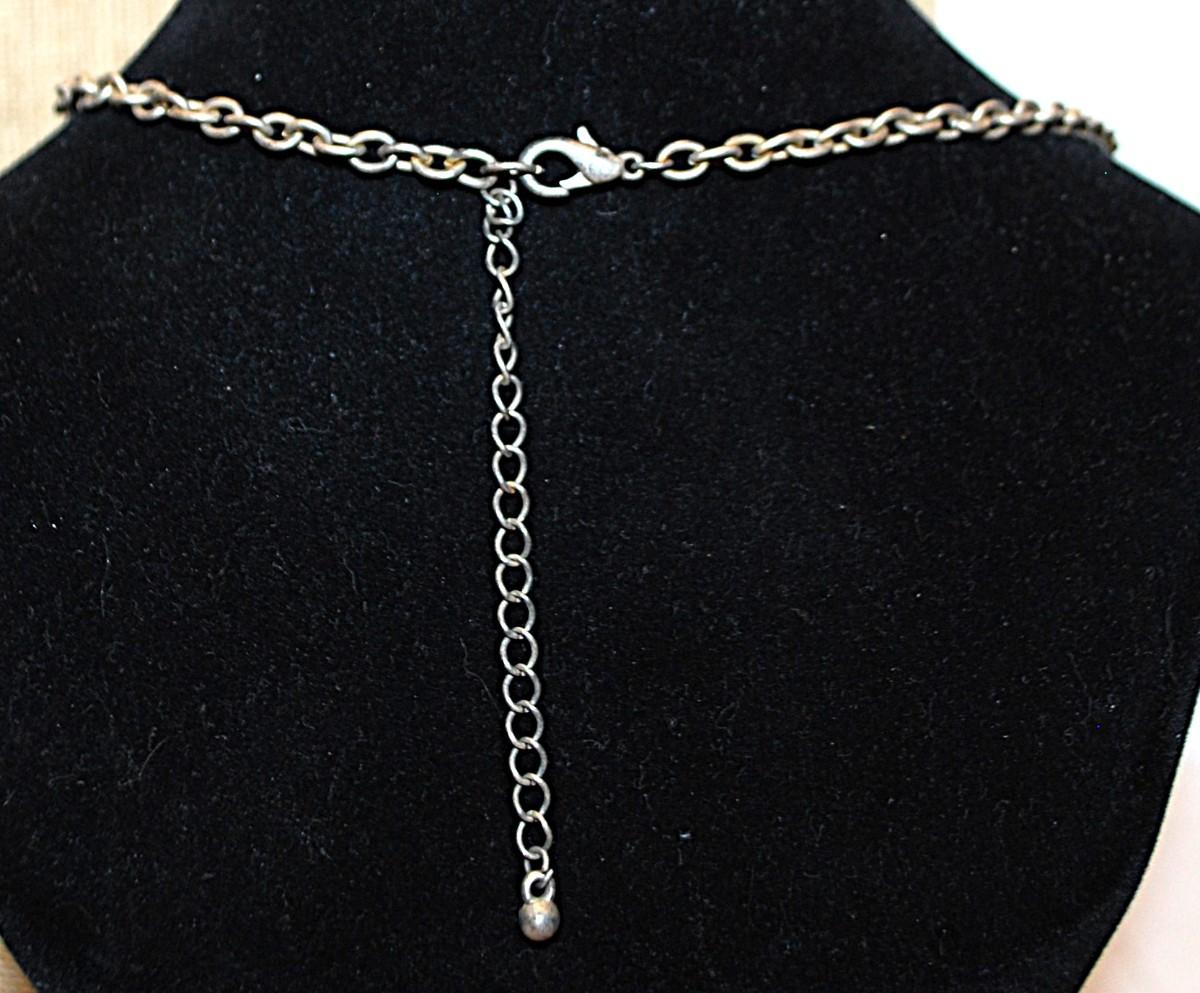 "FLYING HEART" (2¾" x 1½") NECKLACE with Black Stones, Silver Colored Wings & Lobster Clasp 15" L
