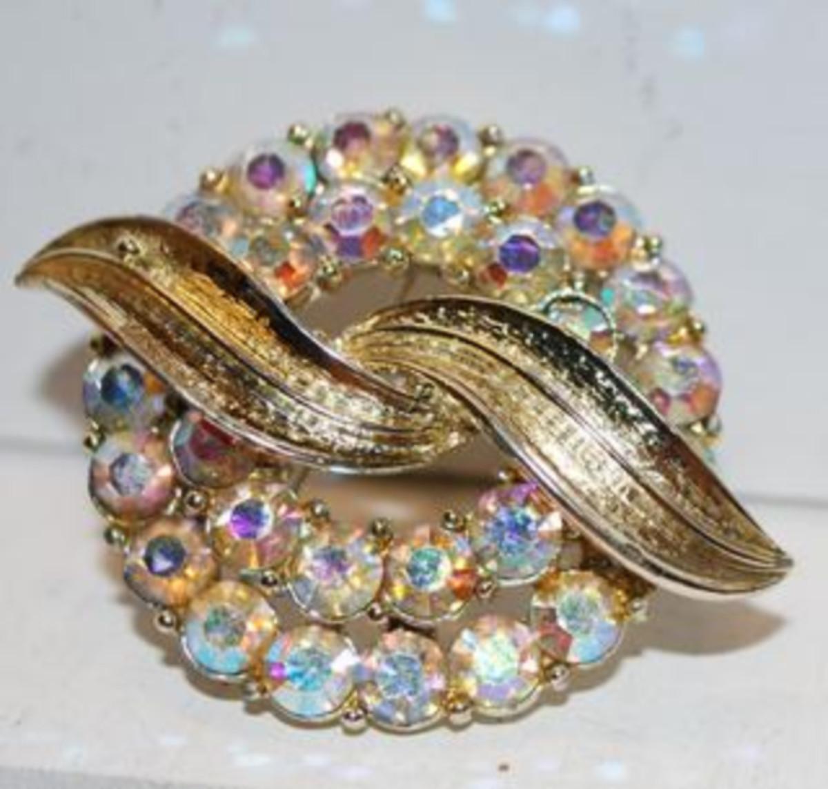 "Flying Wings" Pin with 26 Irridescent Stones 1 1/2" Diameter