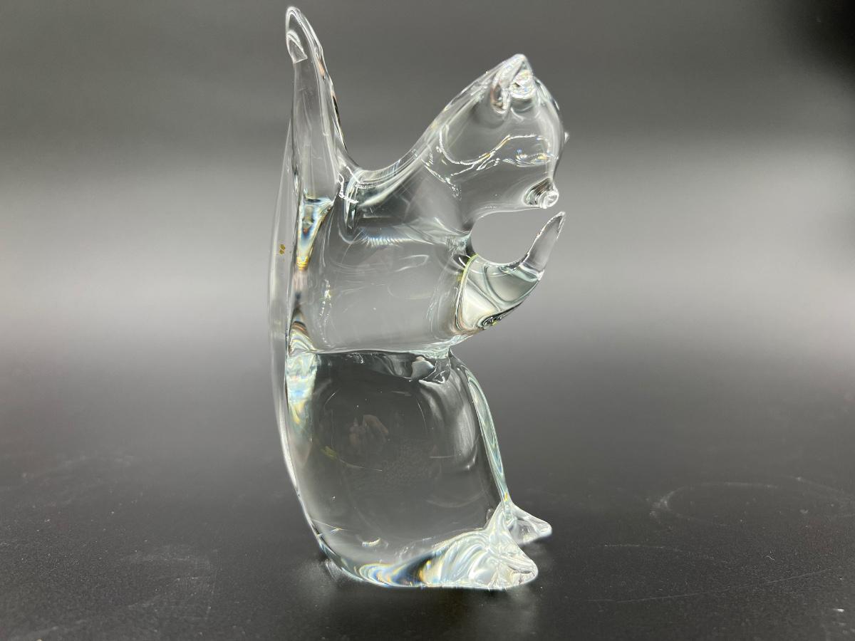 Set of two FM RONNEBY measures 5 1/2 inches tall. Glass Squirrel measures 5 inches tall.