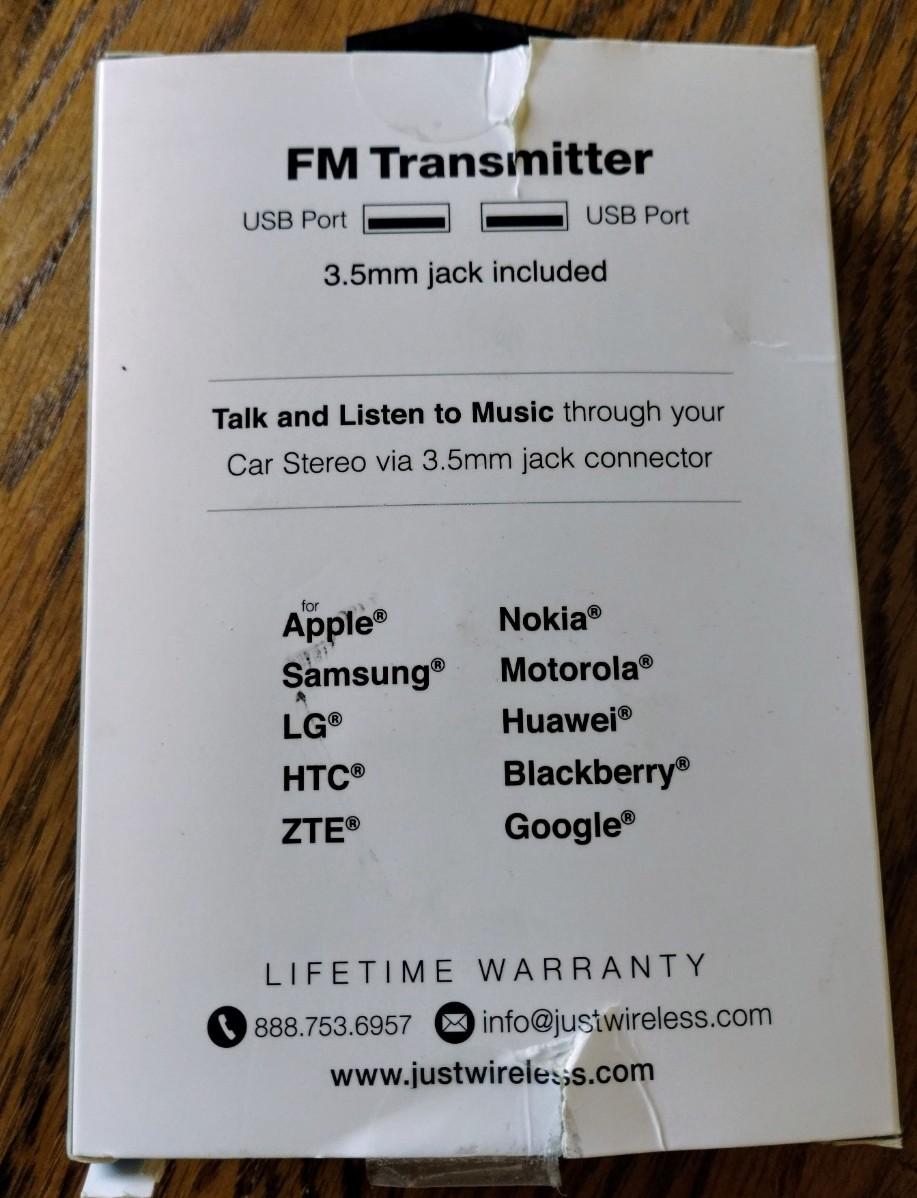 Comes with aux cord, the fm transmitter, and instructions.