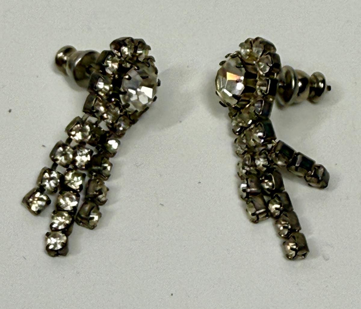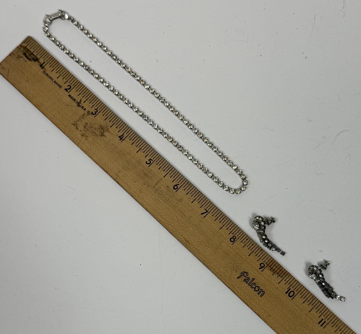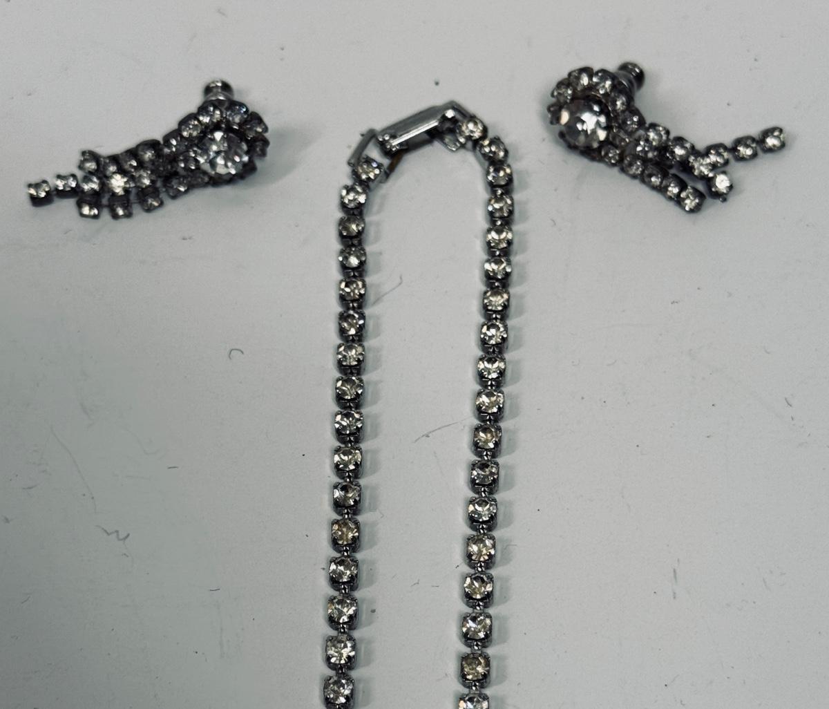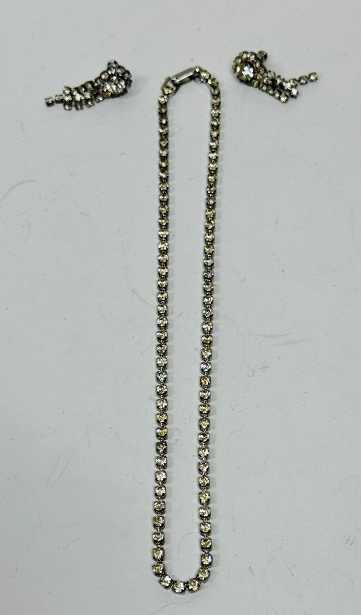 Vintage Rinestone Earrings for Pierced Ears and Matching Rhinestone 14" Necklace