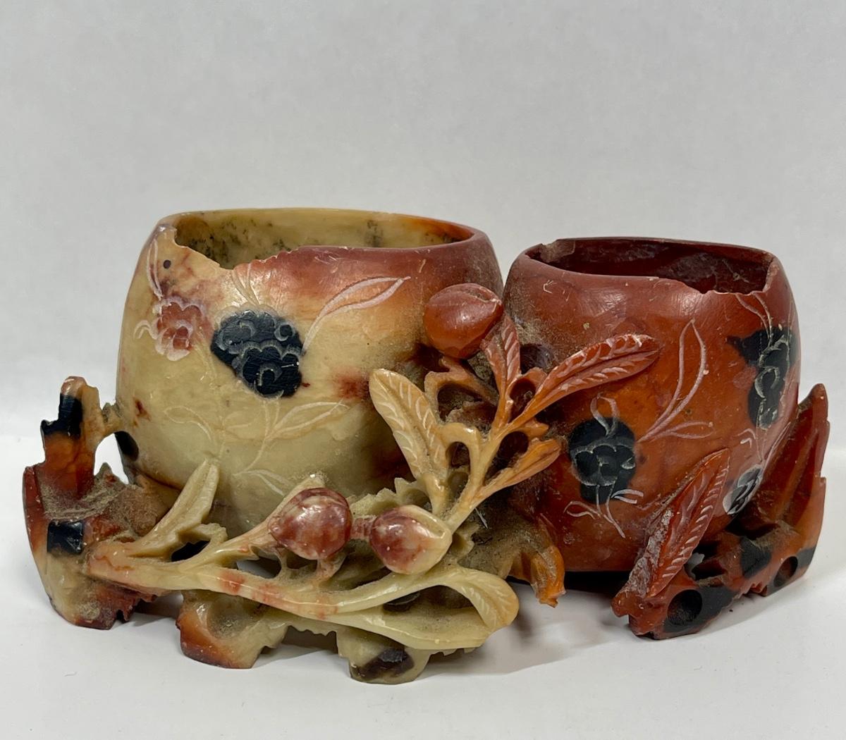 Antique Chinese Soapstone Brush Pots