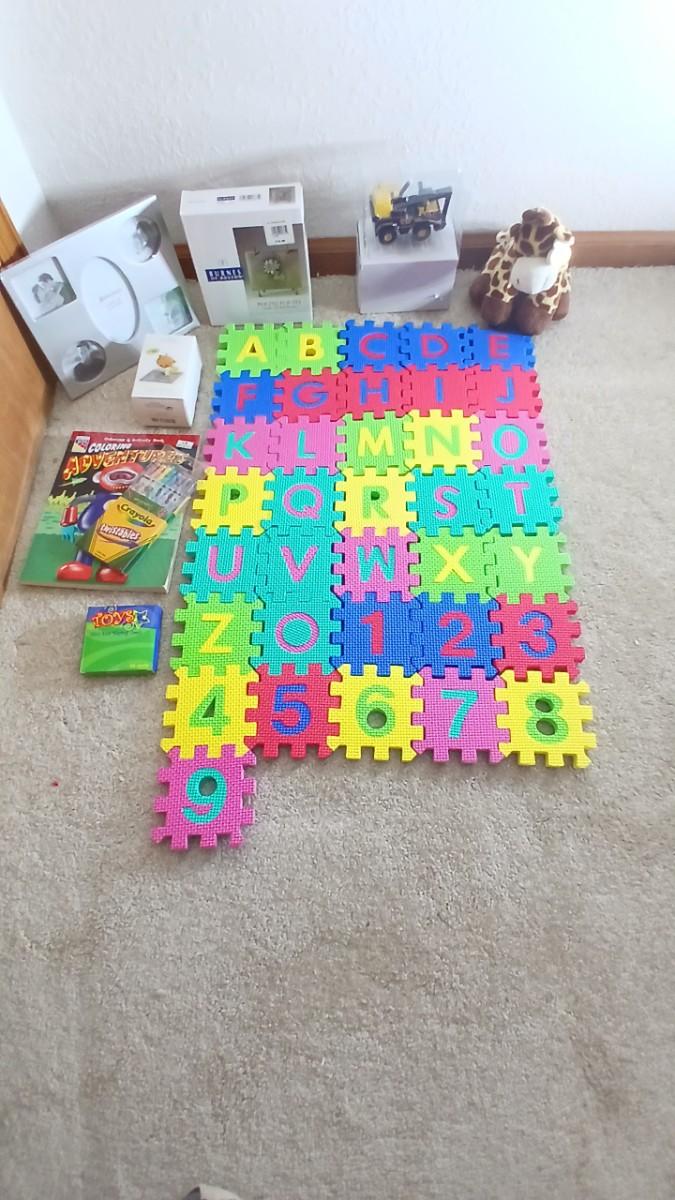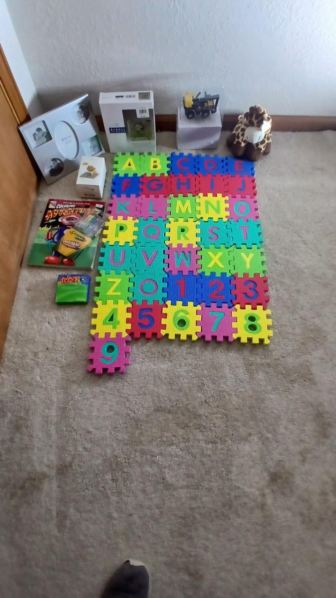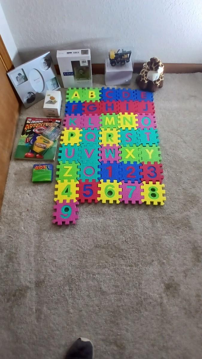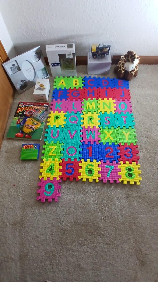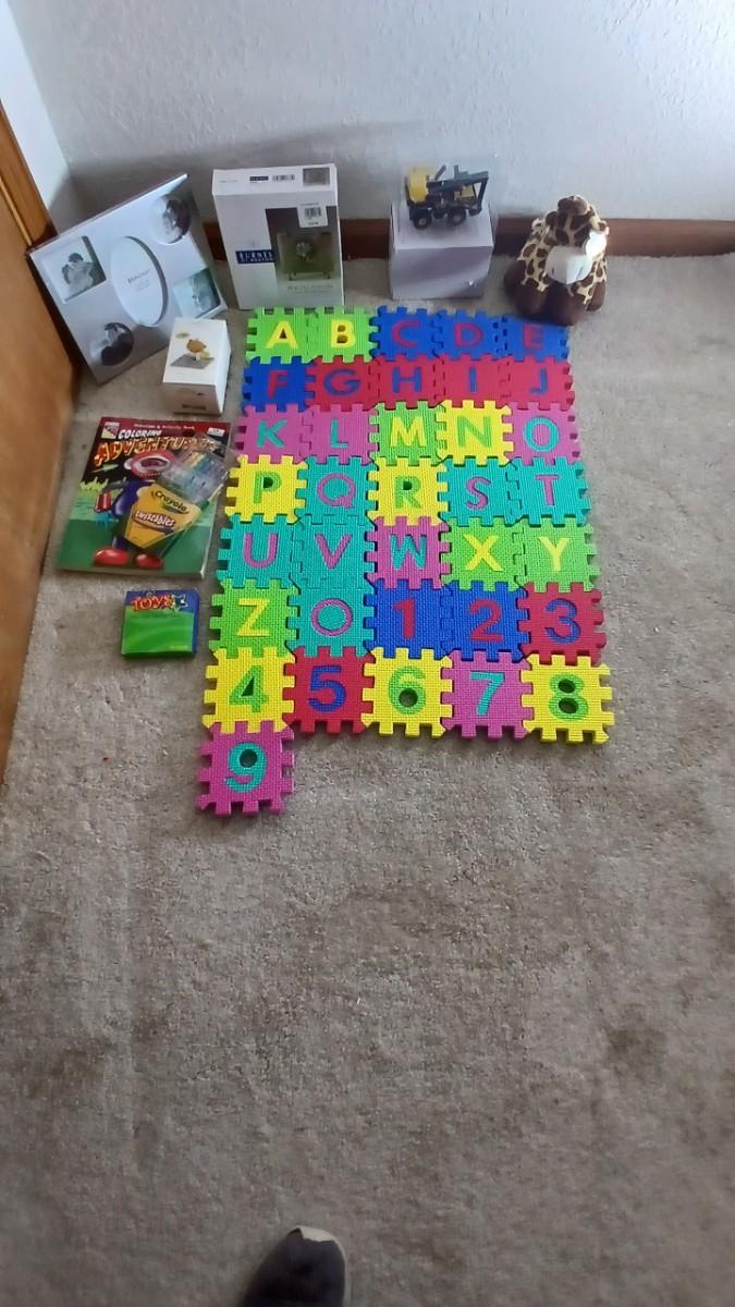 Foam Alphabet & numbers, Coloring book with markers, new picture frames and other toys