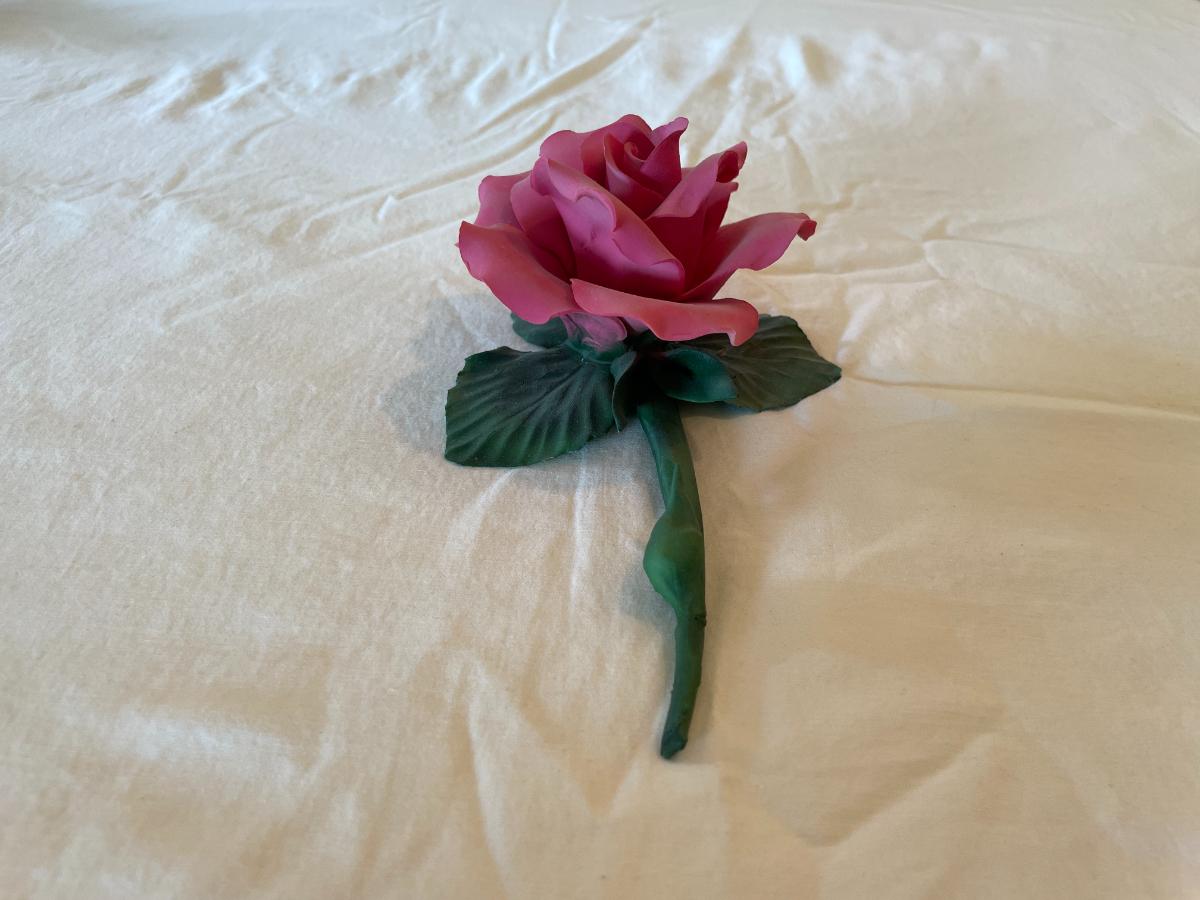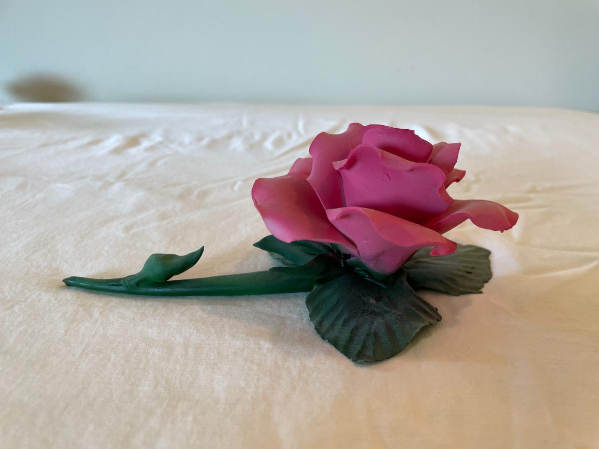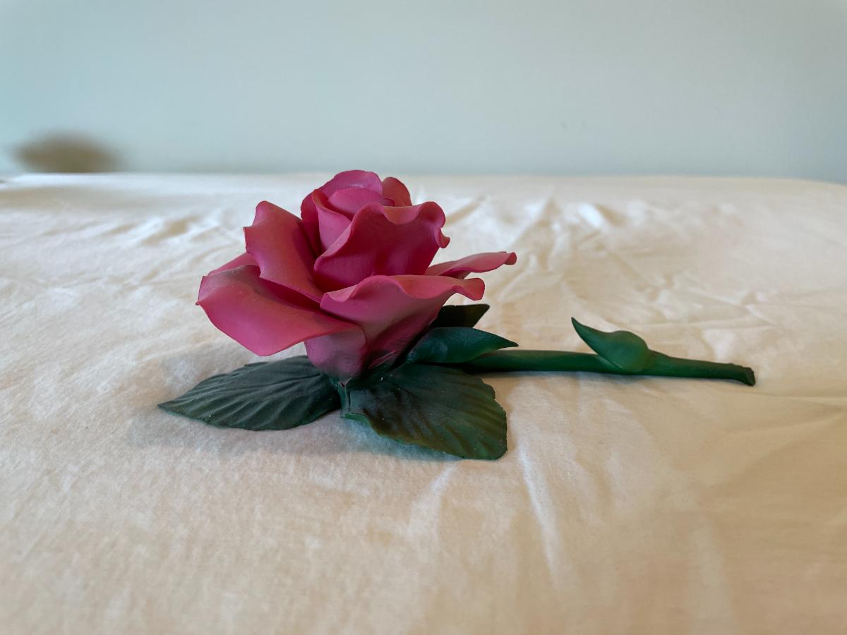 Capodimonte Fabar Handmade Porcelain Rose Figurine, Made in Italy