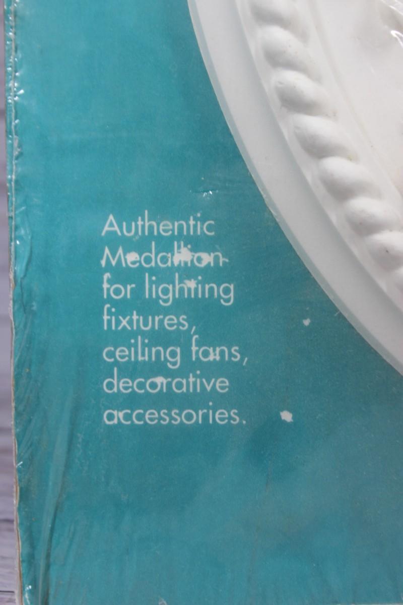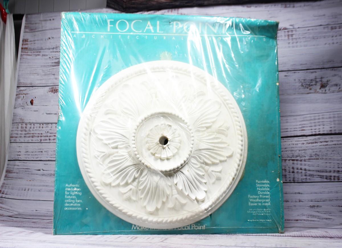 Focal Point ceiling medallion. In original packaging but the plastic has torn. Medallion can be painted to match any decor. About 19" diameter.