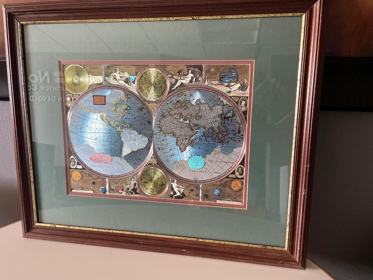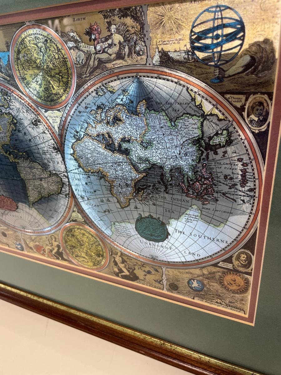 Foil art map framed