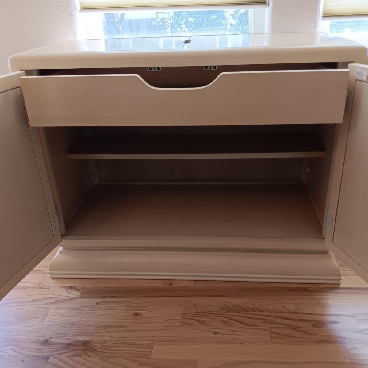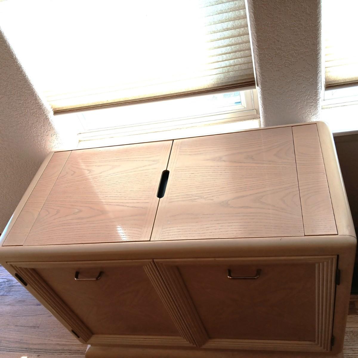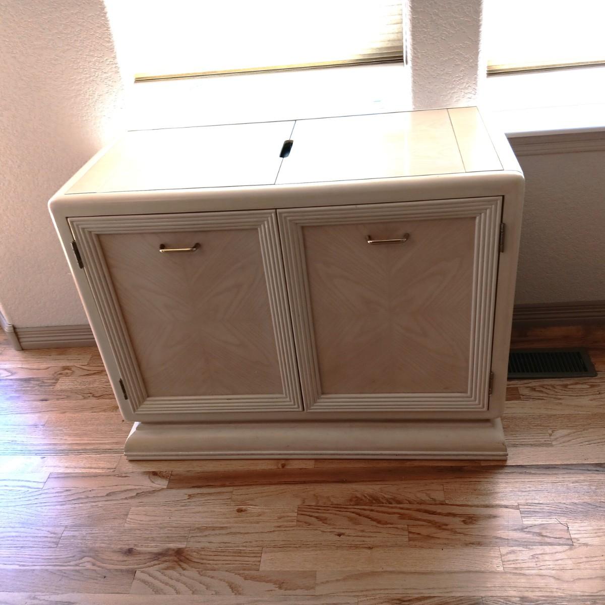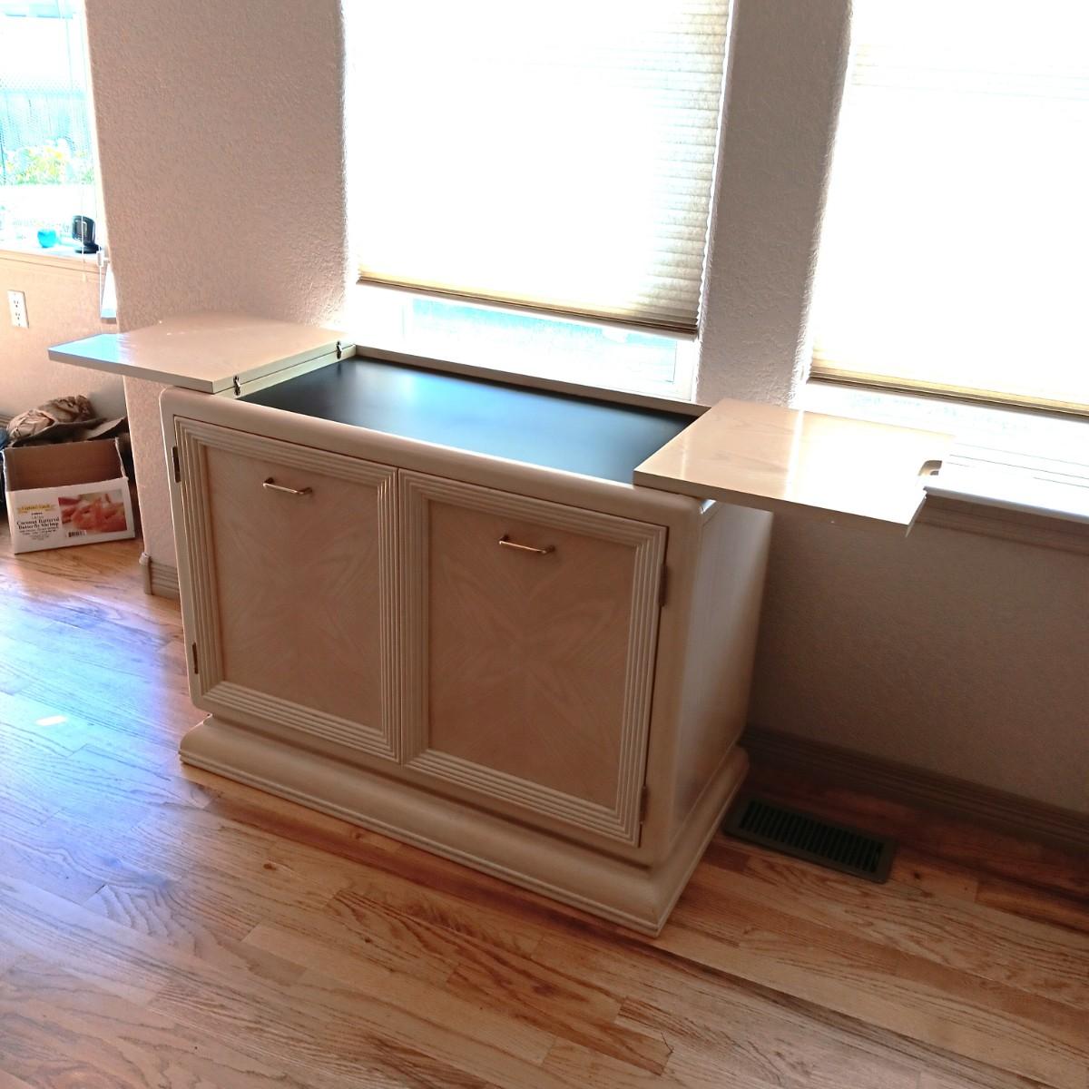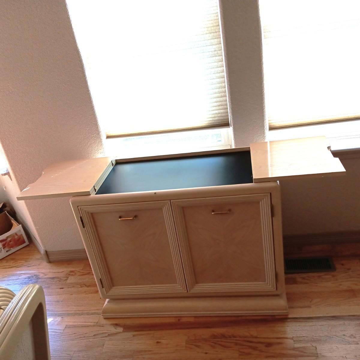 FOLD OUT WHITE WASHED SOLID WOOD SIDE BAR (MATCHES LOTS 126 & 127)