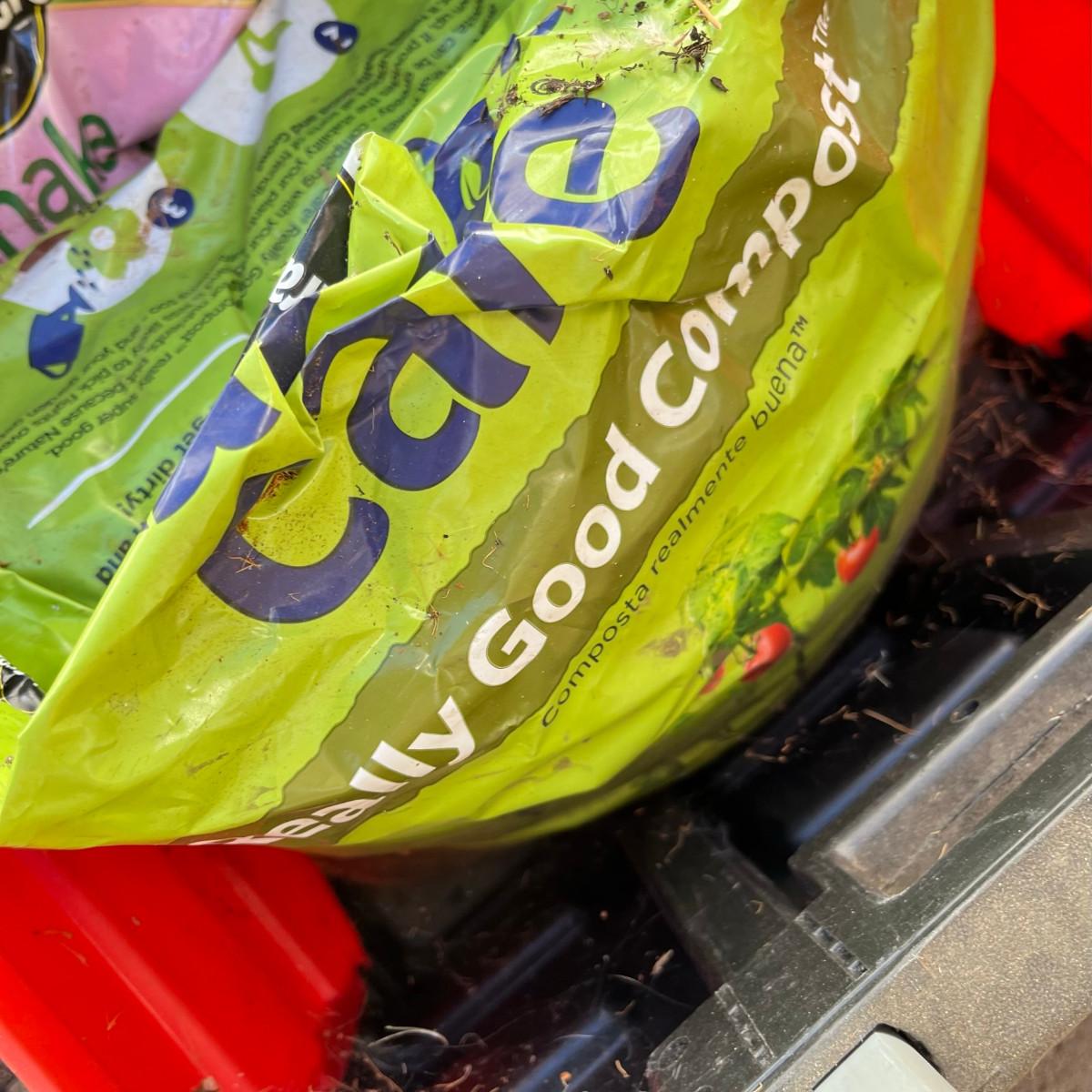 Isn't it appropriate that JR would have this lot with a bag of compost. I mean, now you can grow your grass! Fold up crate is in good shape. The bag of compost is 1/2 full.
