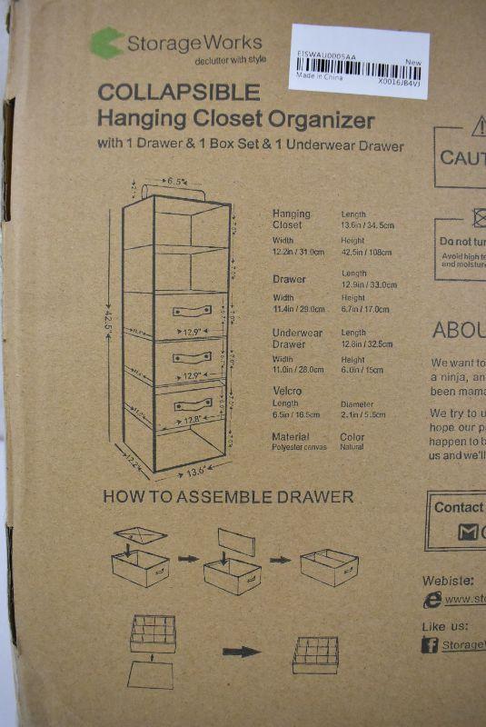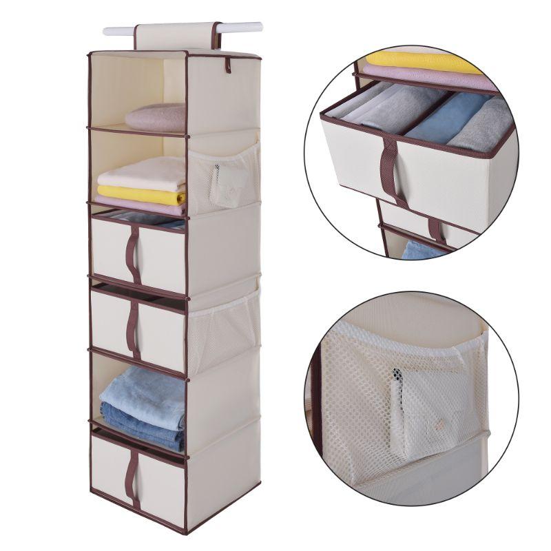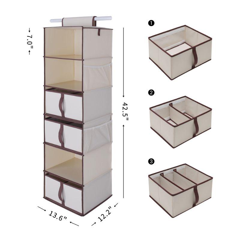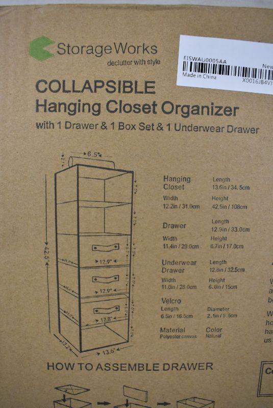 Foldable Hanging Closet Organizer w/ Drawer, 6-Shelf, Natural - New