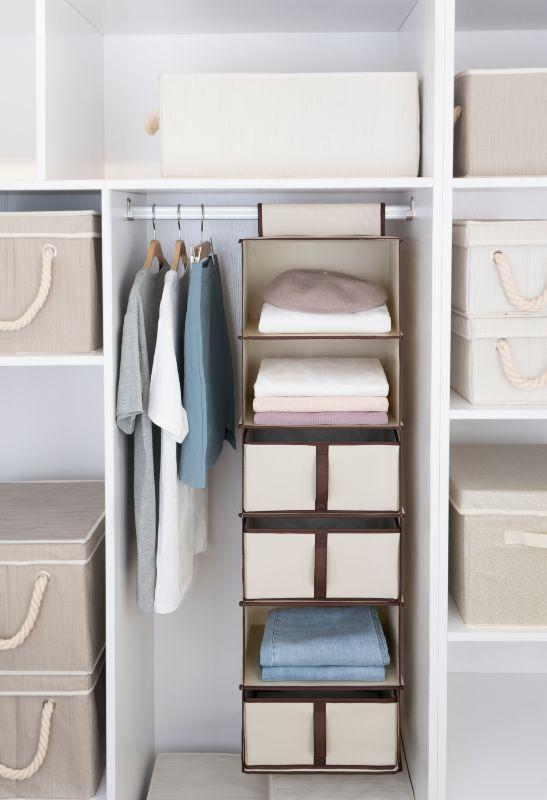 Foldable Hanging Closet Organizer with Drawer, 6-Shelf, Natural, Polyester Canvas - New
