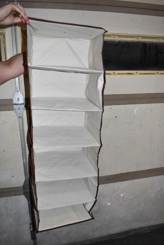 Foldable Hanging Closet Organizer with Drawer, 6-Shelf, Natural, Polyester Canvas. Missing 2 drawers, otherwise new
