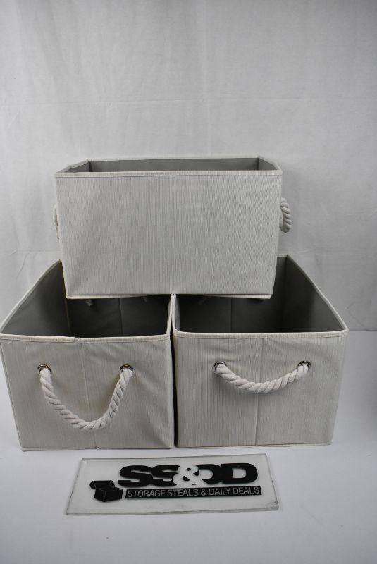 Foldable Storage Basket, 3-Pack, Medium, White, Bamboo Style, Cotton Rope Handles. No packaging - New