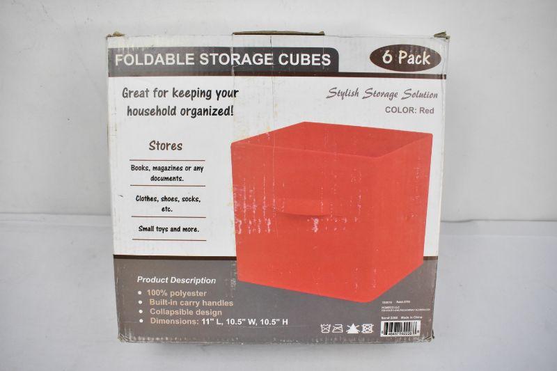Foldable Storage Cubes, Set of 6, Red 11" x 10.5" x 10.5" - New