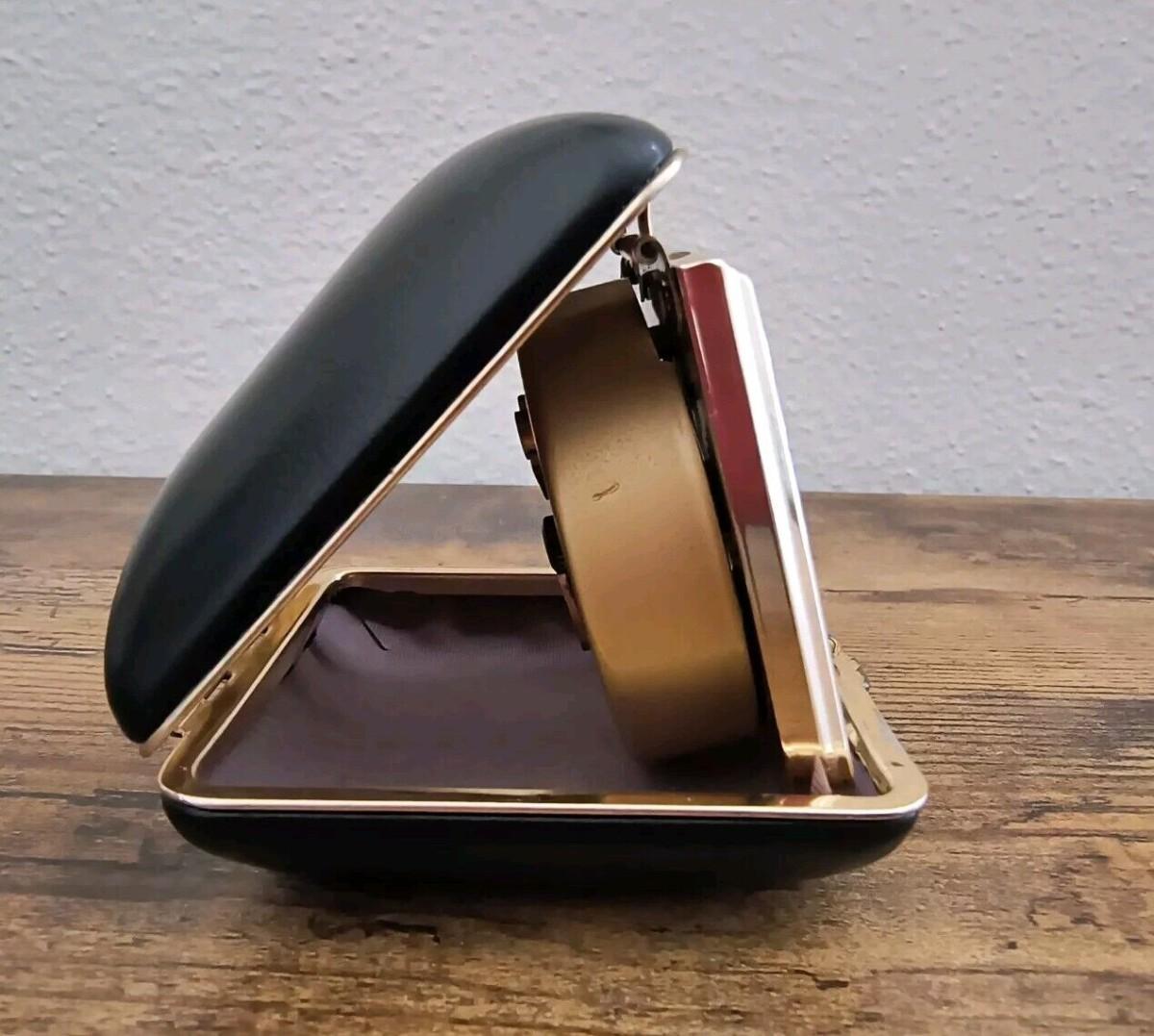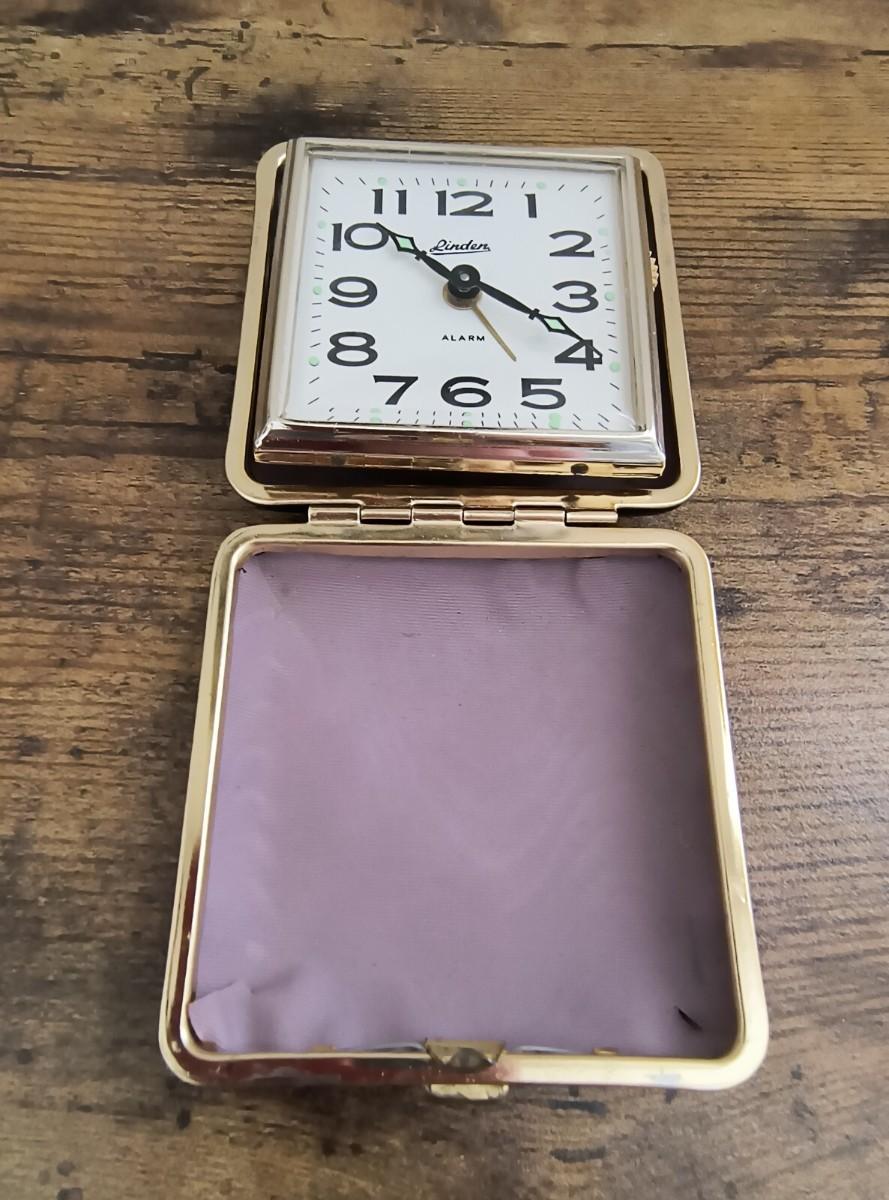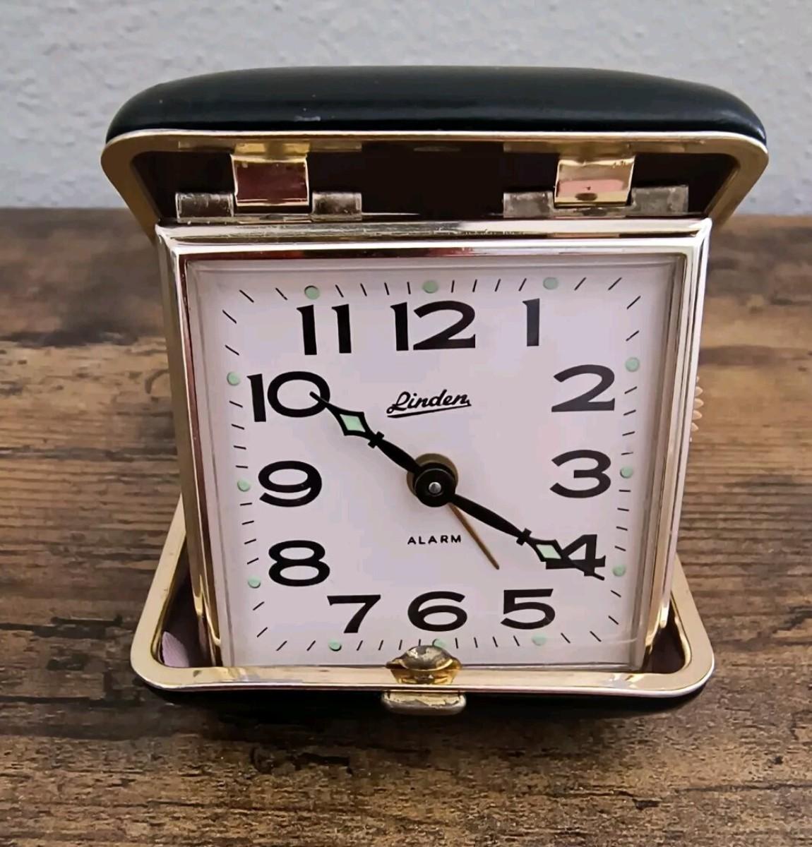 Vintage linden foldable travel Alarm Clock works black case