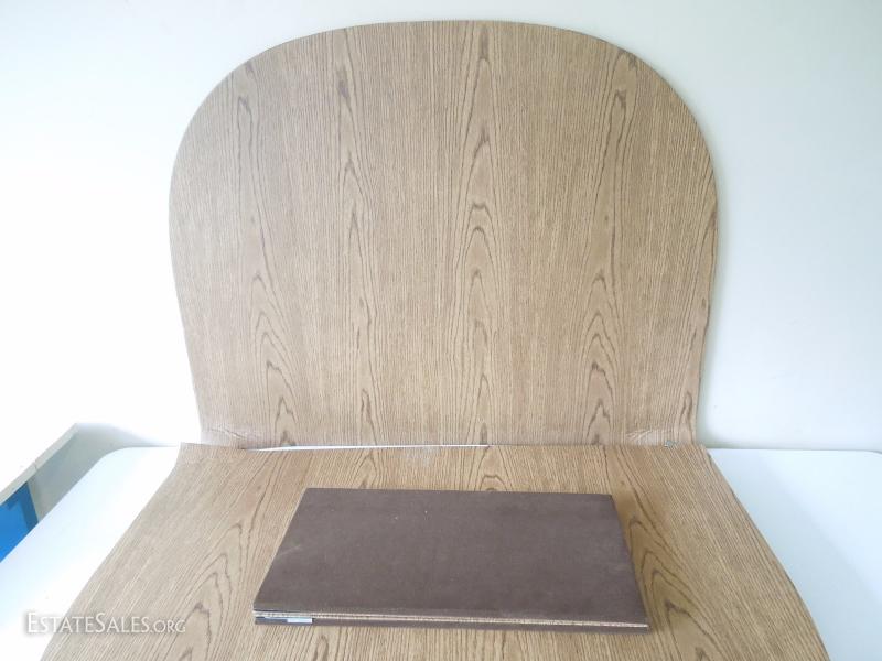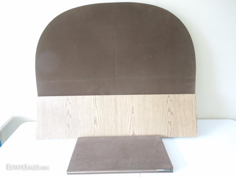 2 Oblong Dining Table Protector Covers with 2 rectangular interlocking extensions. Good for puzzling, crafting, or polishing. Soft cloth tops over thick cardboard. Has hinges for interlocking. One hinge has come loose due to water damage in cardboard.