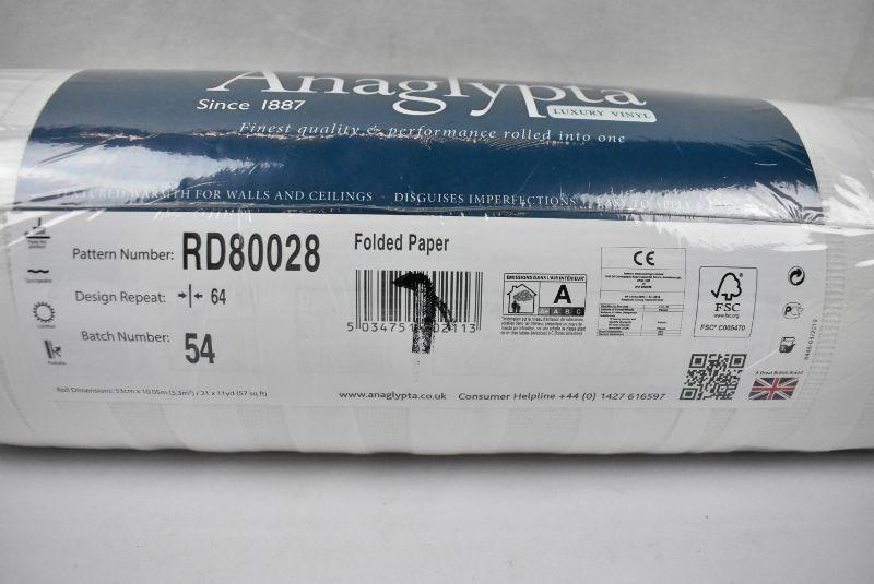 Folded Paper Paintable Textured Vinyl Wallpaper. Damaged as shown, $46 Retail
