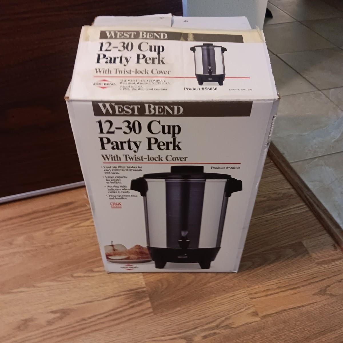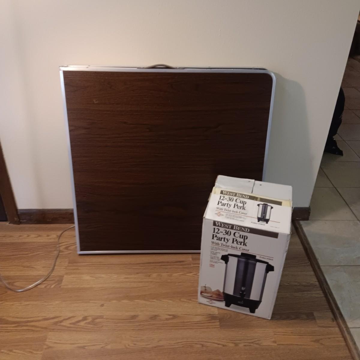 FOLDING 6 FOOT TABLE AND A 12 - 30 CUP PARTY PERK