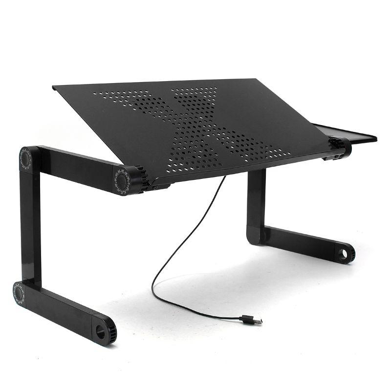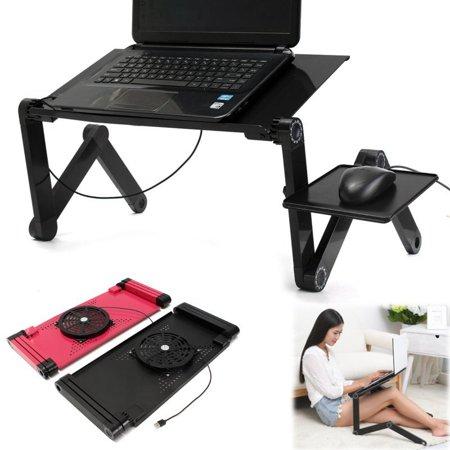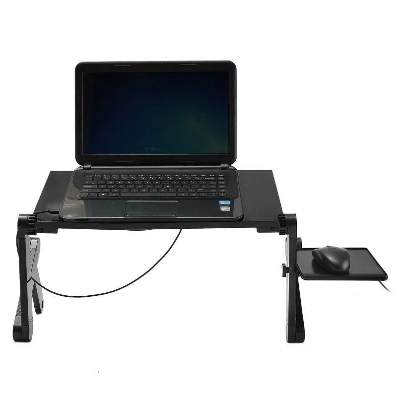Folding Adjustable Aluminum Laptop Desk for Bed with Cooling Fan - New