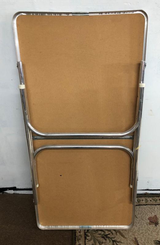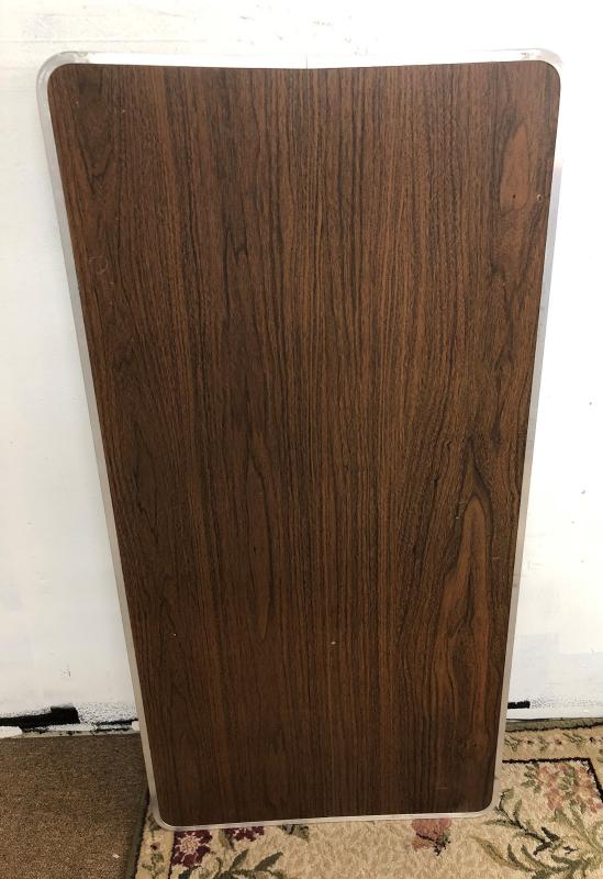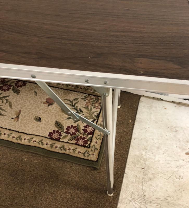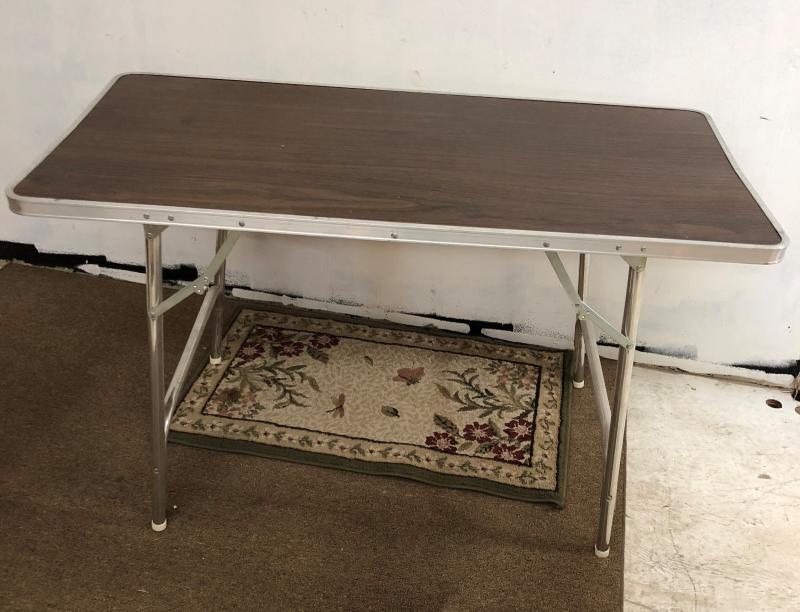 New condition on this folding aluminum camp table..Wood grain top..24" high by 49" long...