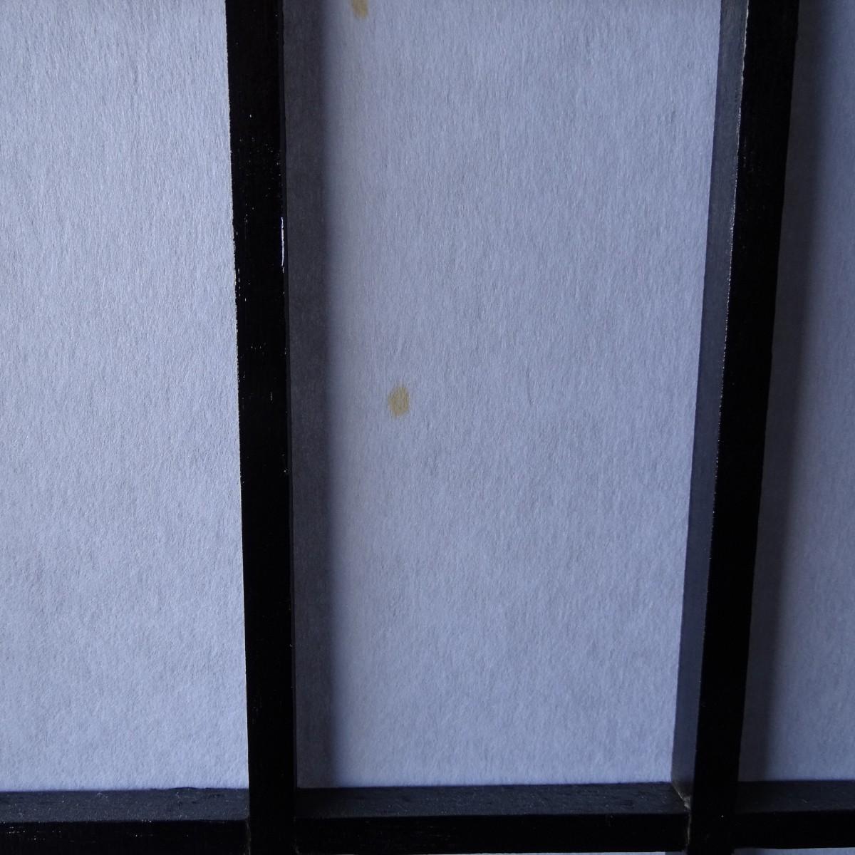 Folding Asian style screen. Some minor scratches, yellow spot on fabric.