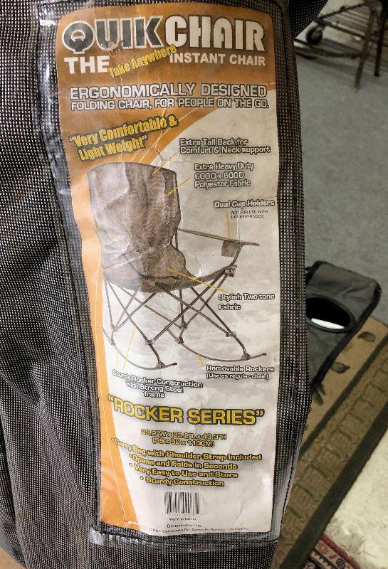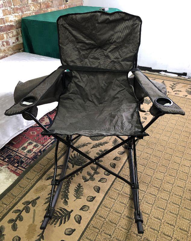 Nice condition on this folding camp chair/ rocker....with drink holders...