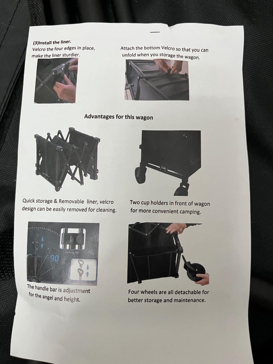 Folding camping wagon that easily breaks down for storage. Great for beach outings or picnics with the family. Never used and still in original box.