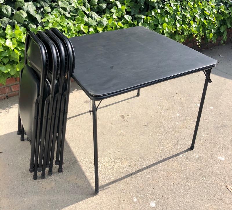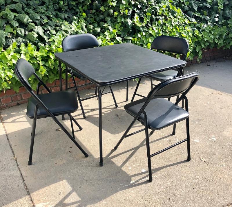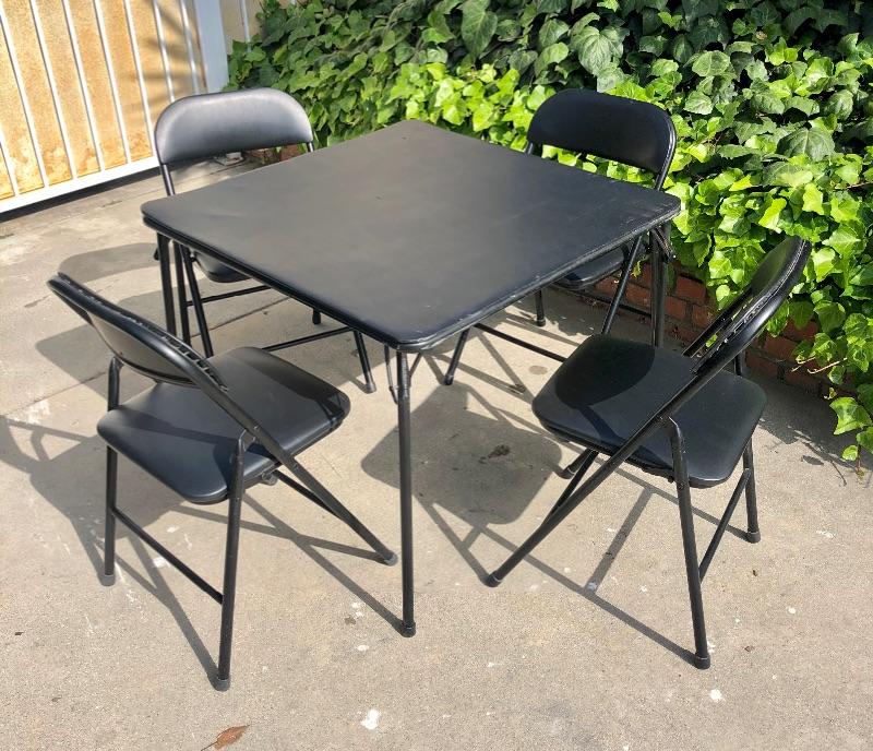 Folding card table and 4 folding chairs.