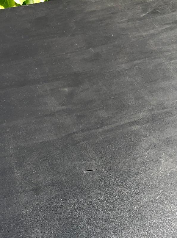 No brand name on the items. Note that the is a small hole and small split in the table top fabric, both are very small. See photos for details.