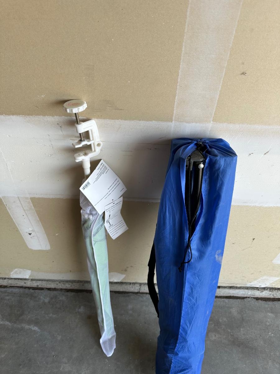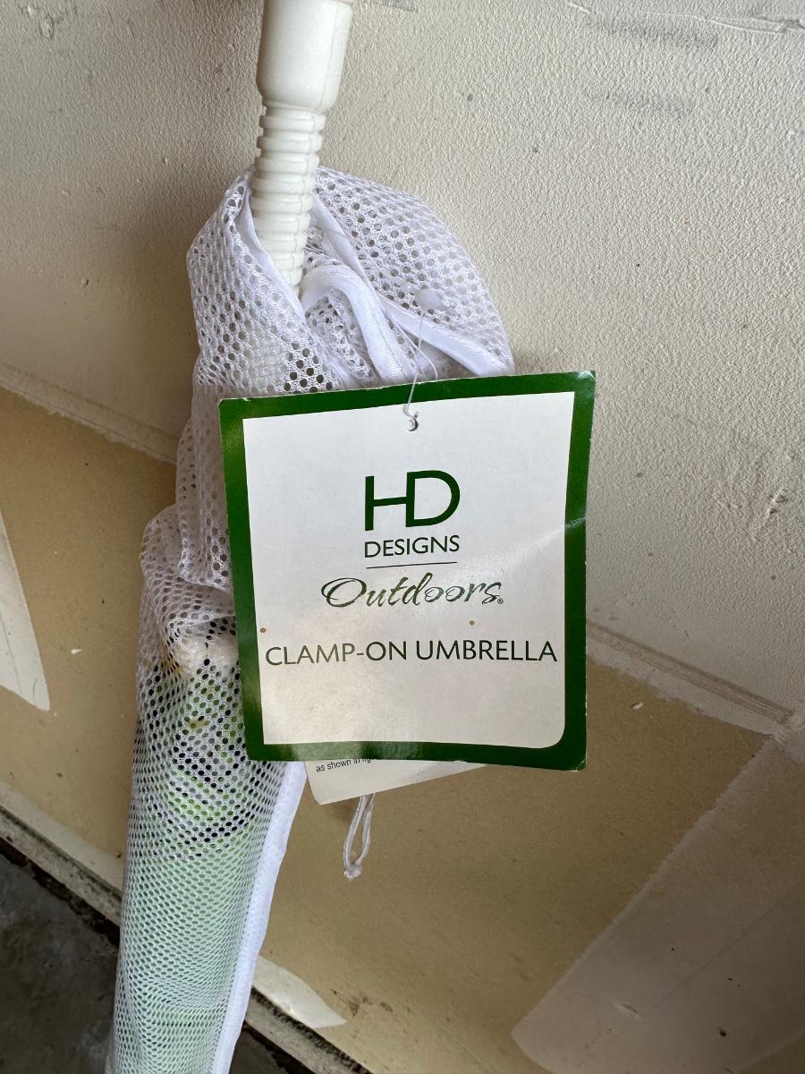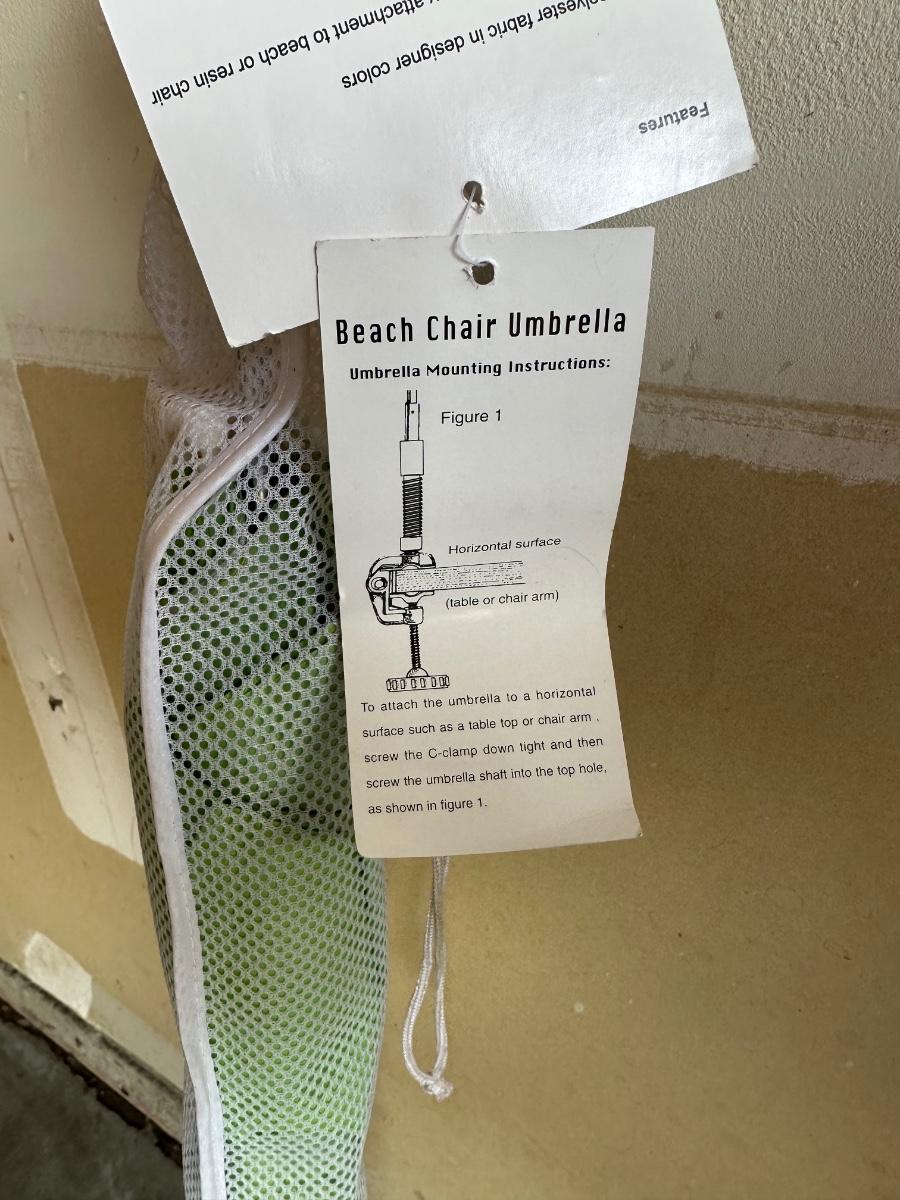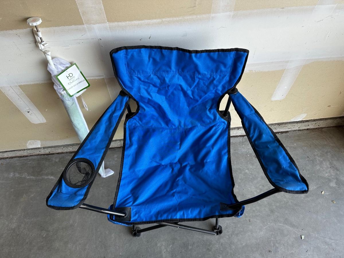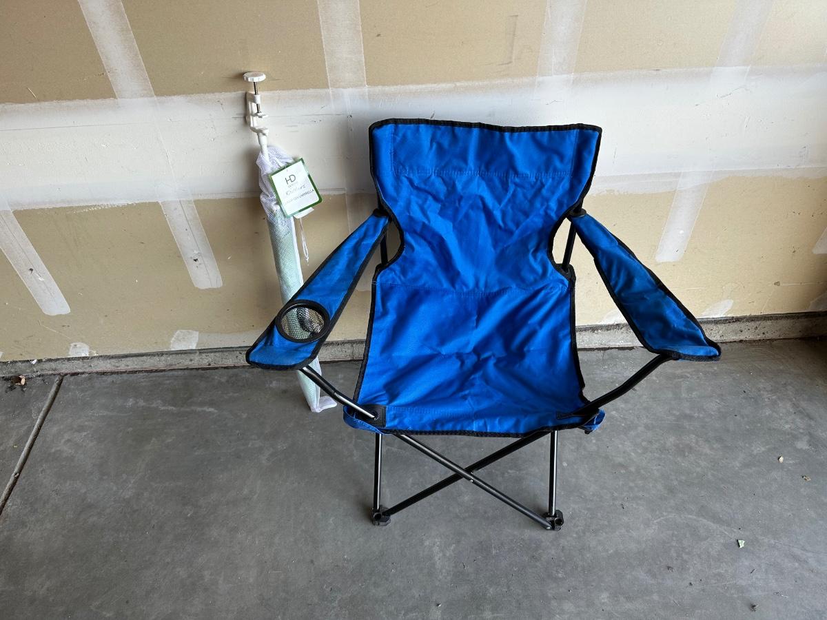 FOLDING CHAIR AND LARGE UMBRELLA