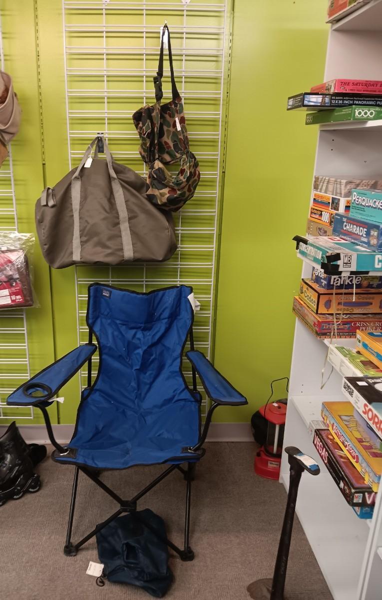 FOLDING CHAIR, SPORTSMAN FANNY PACK AND DUFFLE BAG