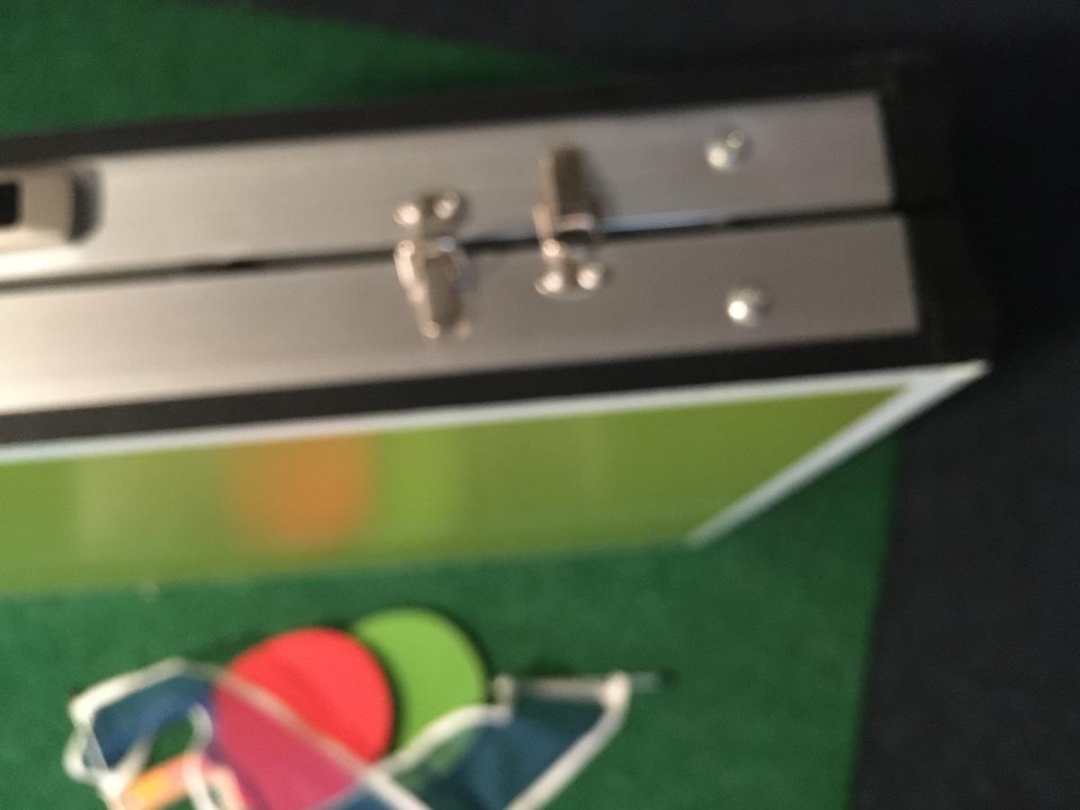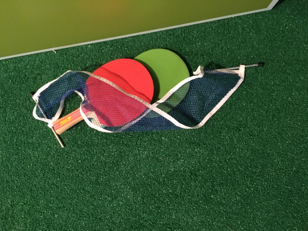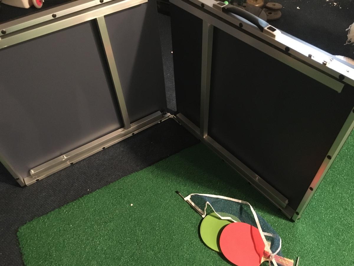 Folding ping pong table with paddels and net. Also includes some ping pong balls not shown.