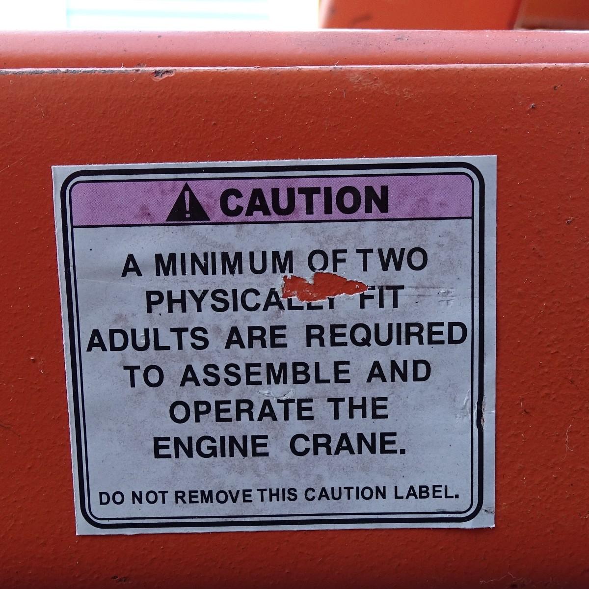 Folding Engine hoist with swivel hook, extra large wheels, newer ram, modifications for extension of arm, Harbor Freight sourced originally before modifications
