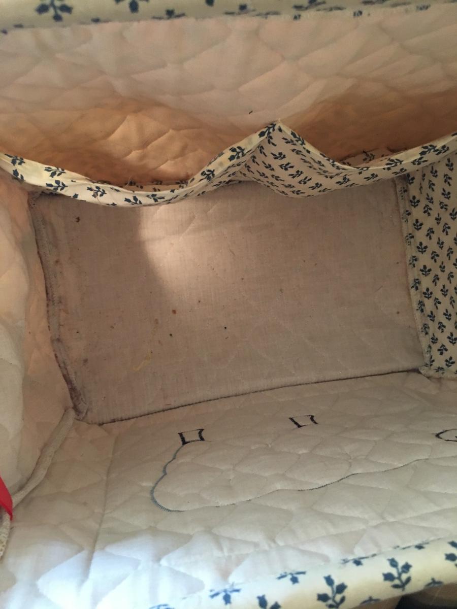Folding quilted sheep themed s=kiting/sewing basket.