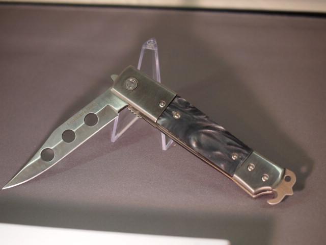 Folding Louisiana Gator knife 3 1/2 inch blade With a riveted Black Pearl handle