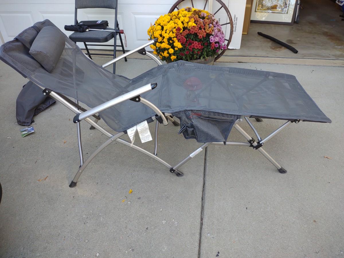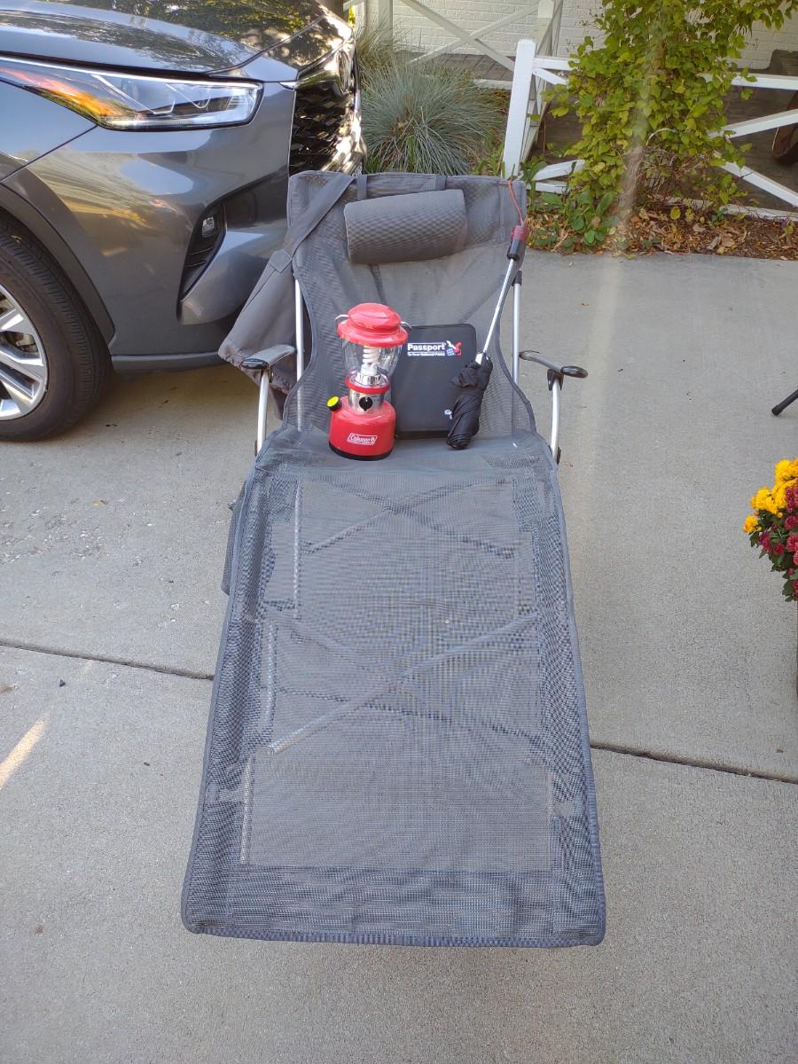 FOLDING LOUNGE CHAIR, LANTERN AND MORE