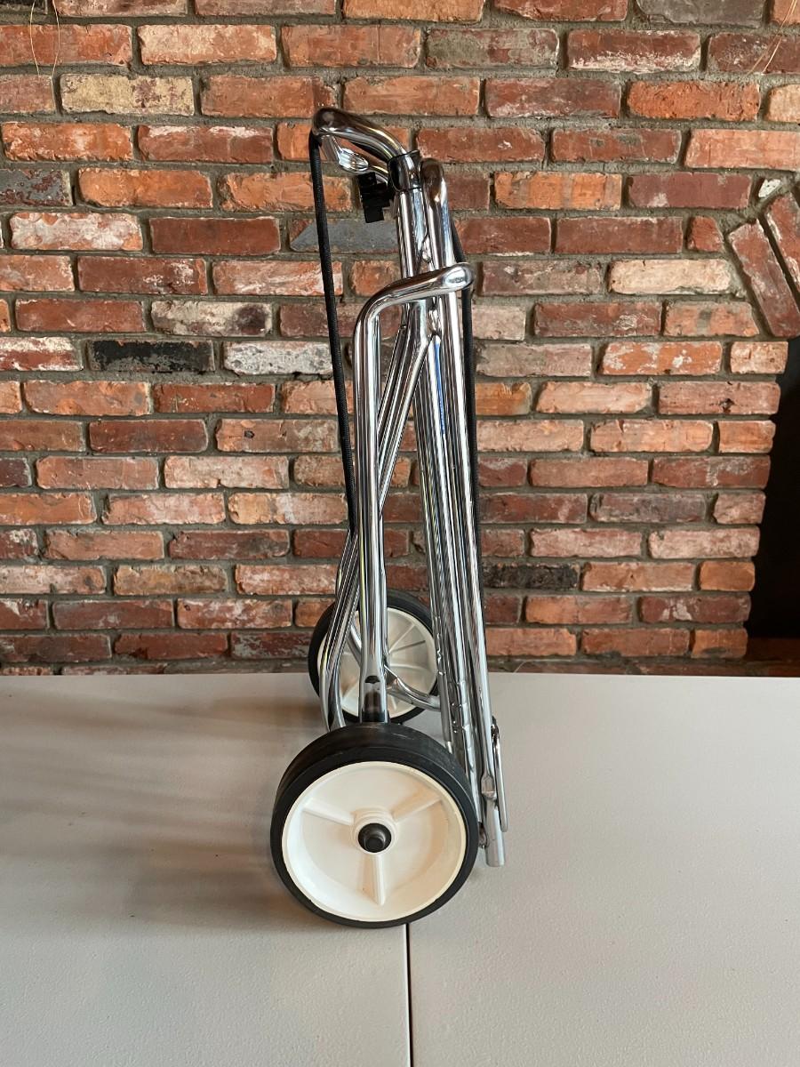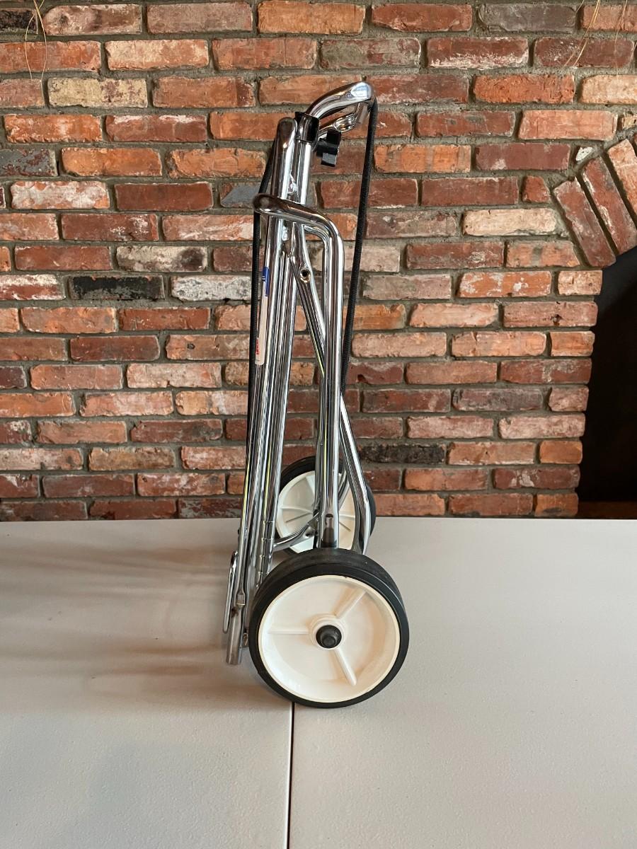 Metal folding luggage cart with straps. When closed: 12W x 23H