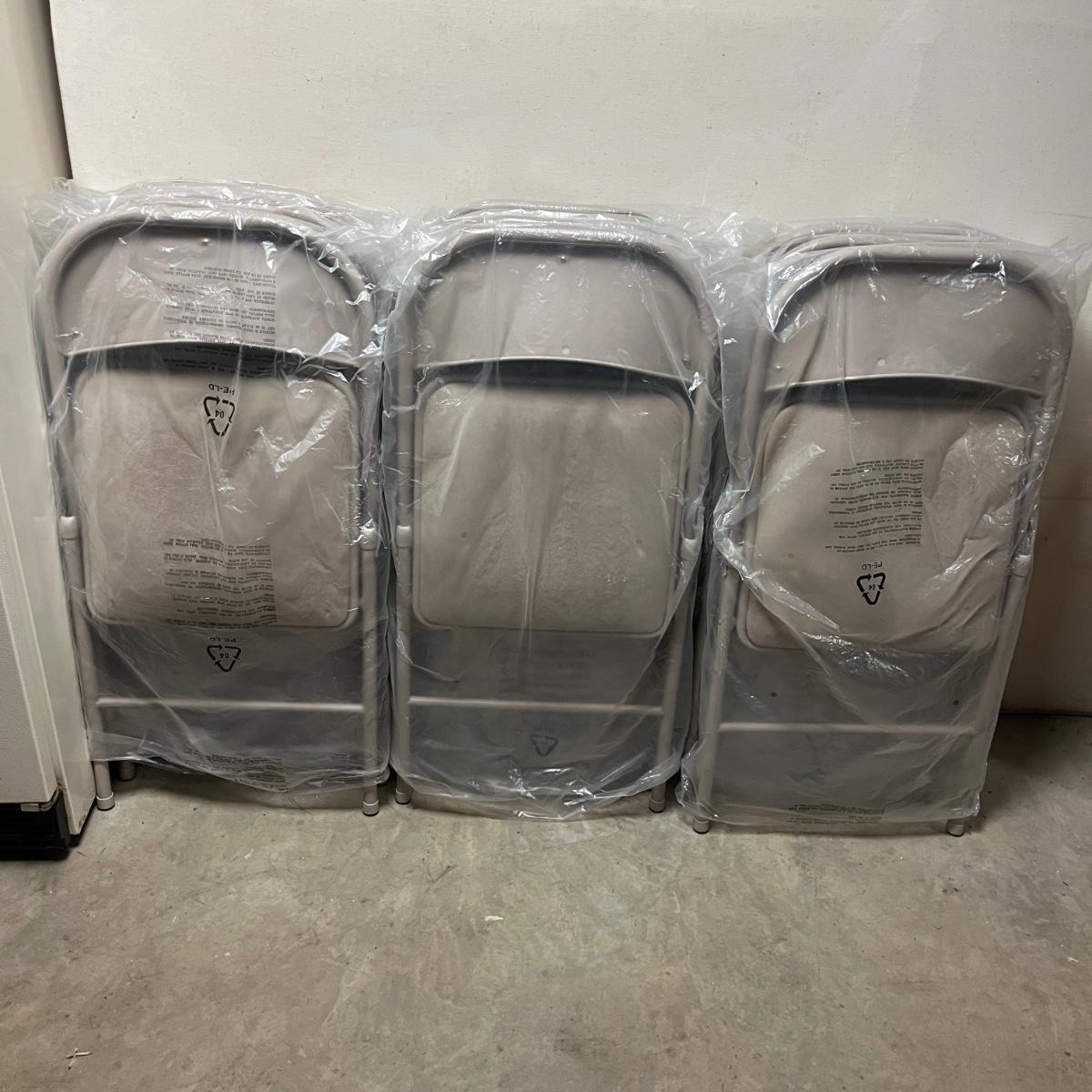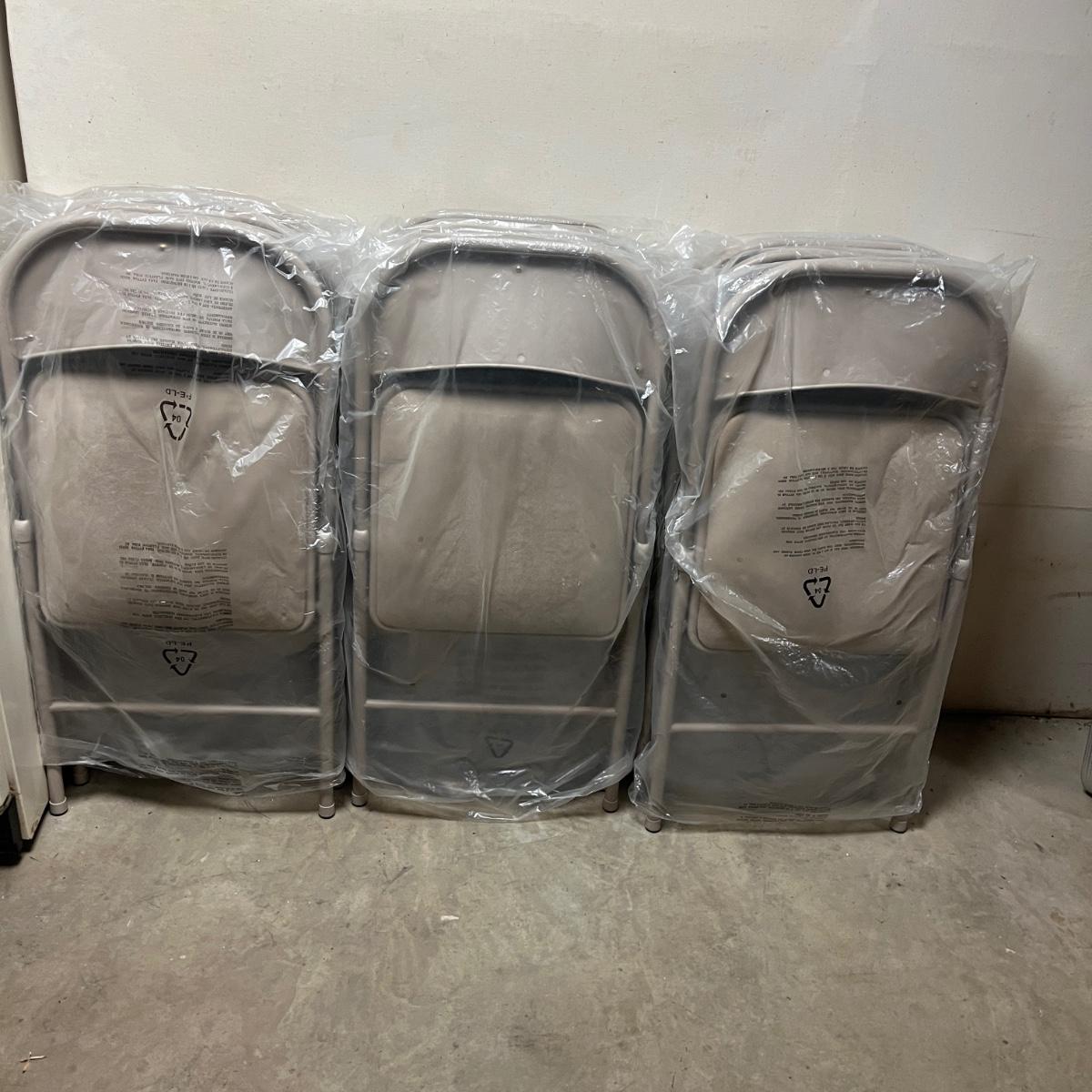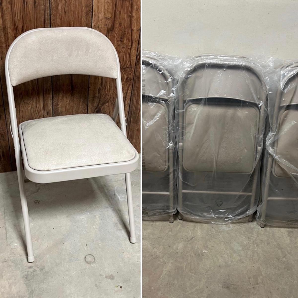 Lot includes 12 folding metal chairs with padded back and seats. Chairs measure 18” x20” x 30” with a 17” seat height.
