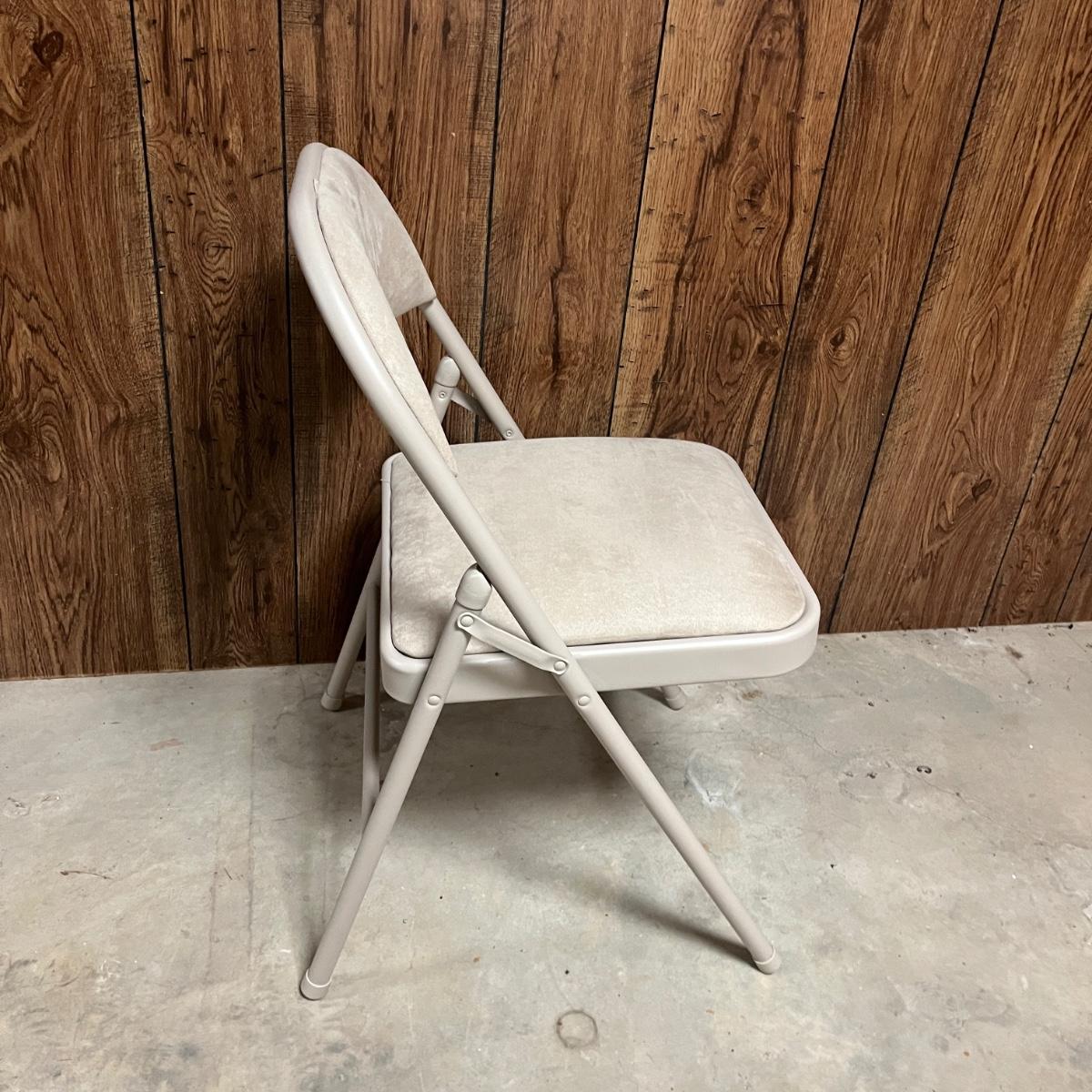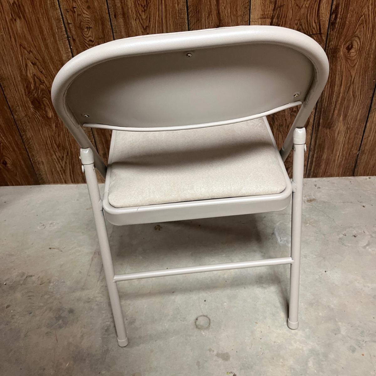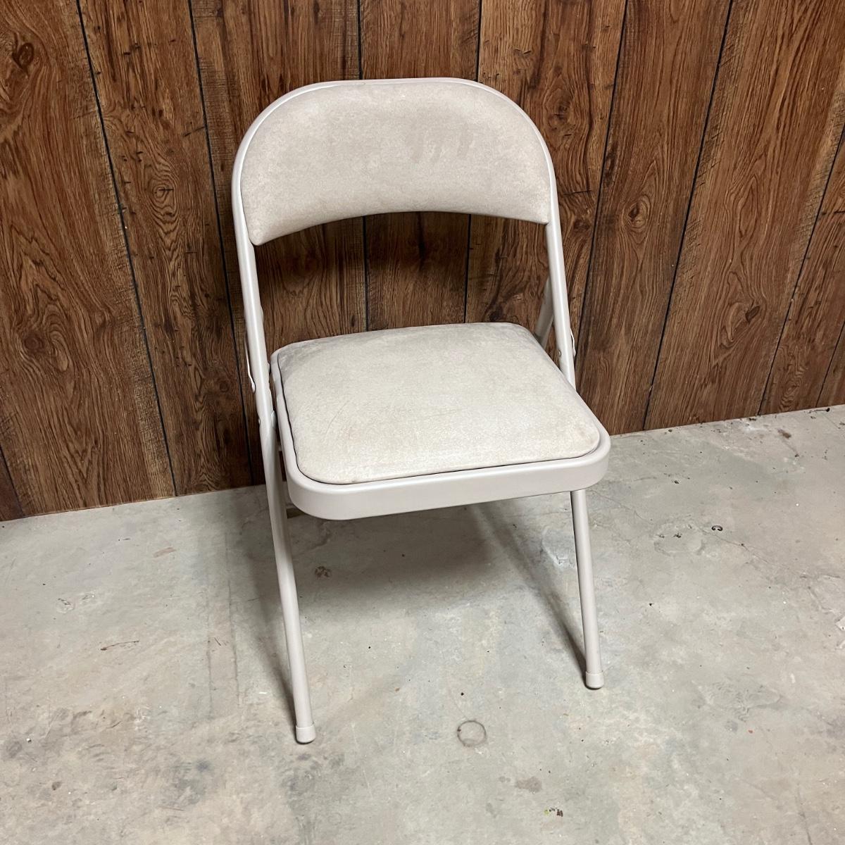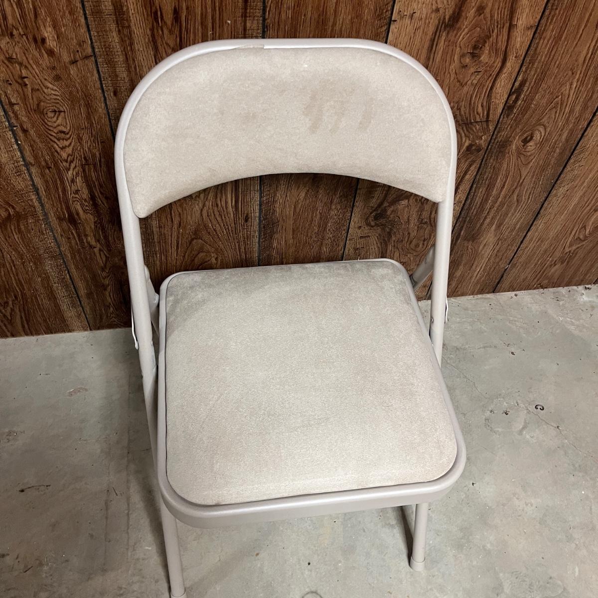 Lot includes 12 folding metal chairs with padded back and seats. Chairs measure 18” x20” x 30” with a 17” seat height.