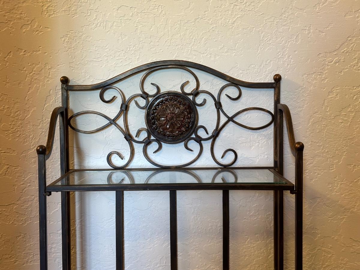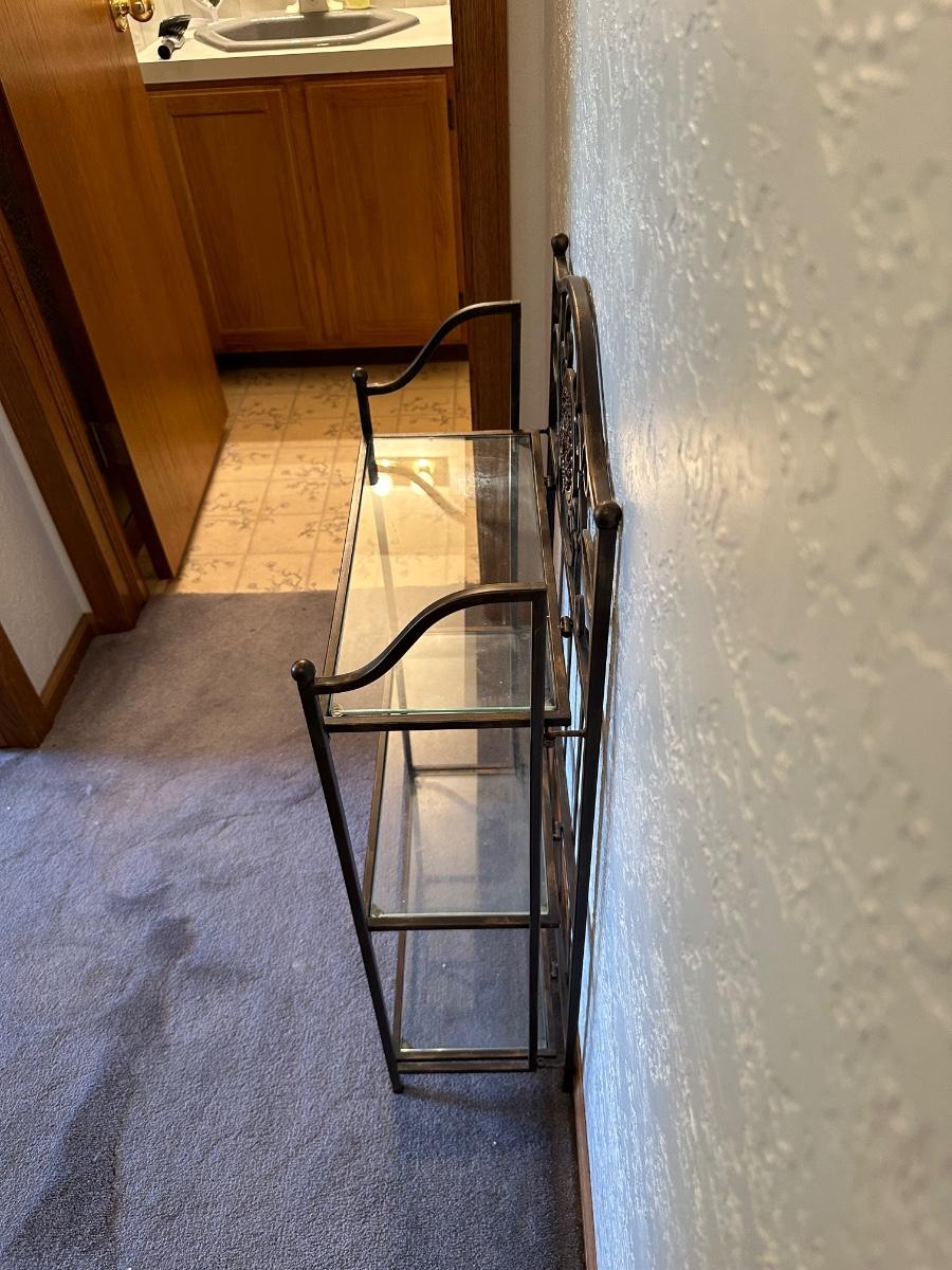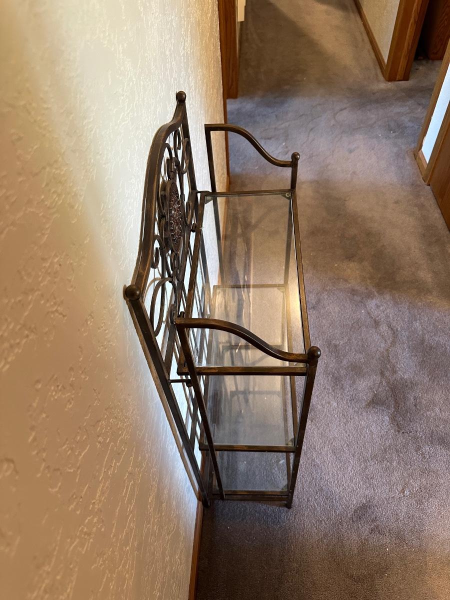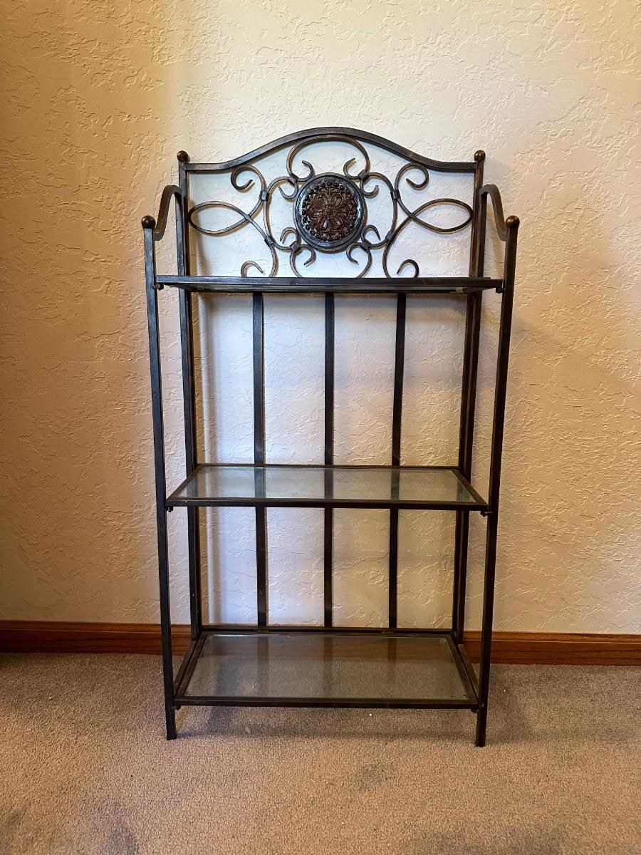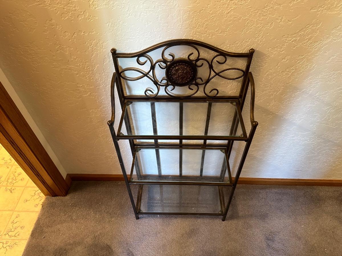 FOLDING METAL SHELF WITH GLASS SHELVES