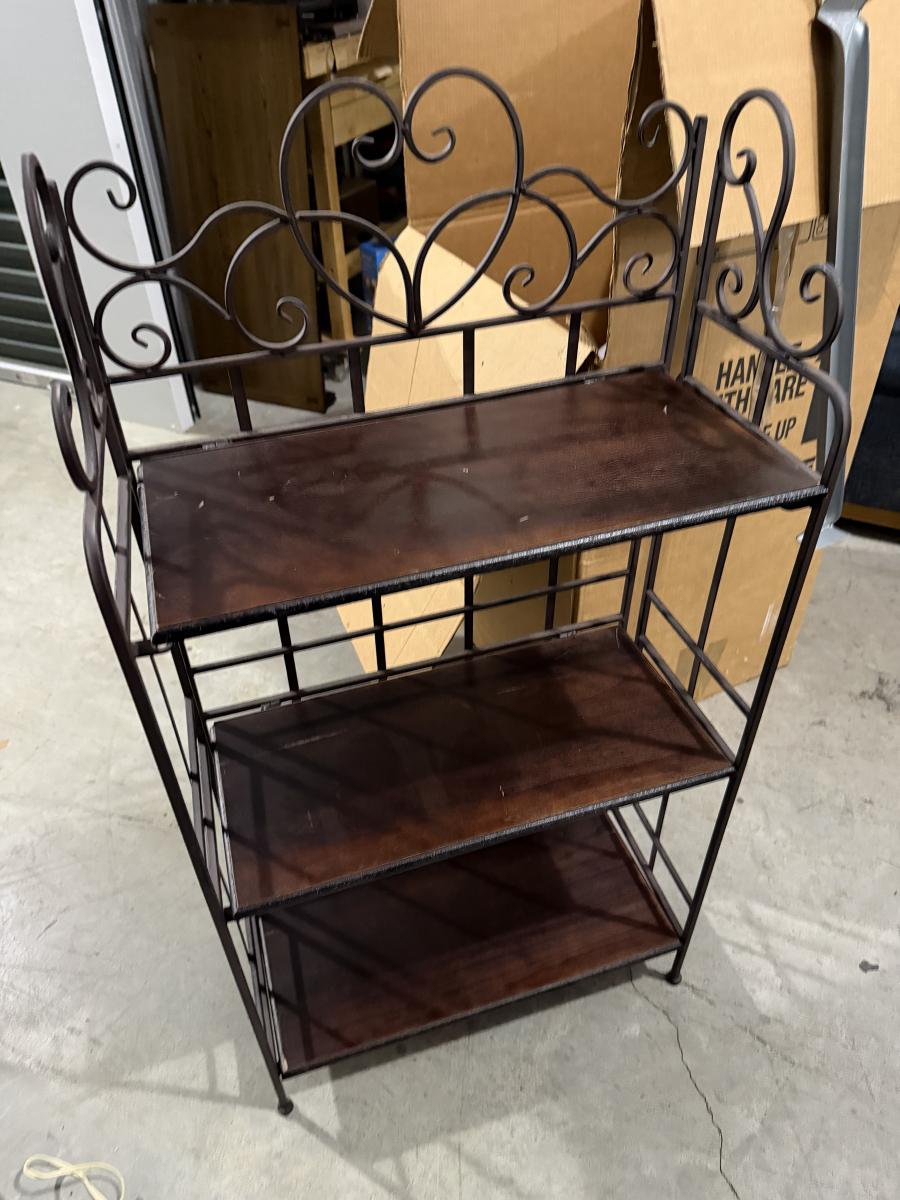 Folding metal shelving unit with wood shelves