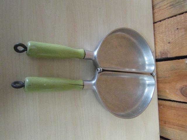 Folding Omelette Pan- Electric Range Utensil Company Chicago. Small split in wooden handle. Please see pictures.