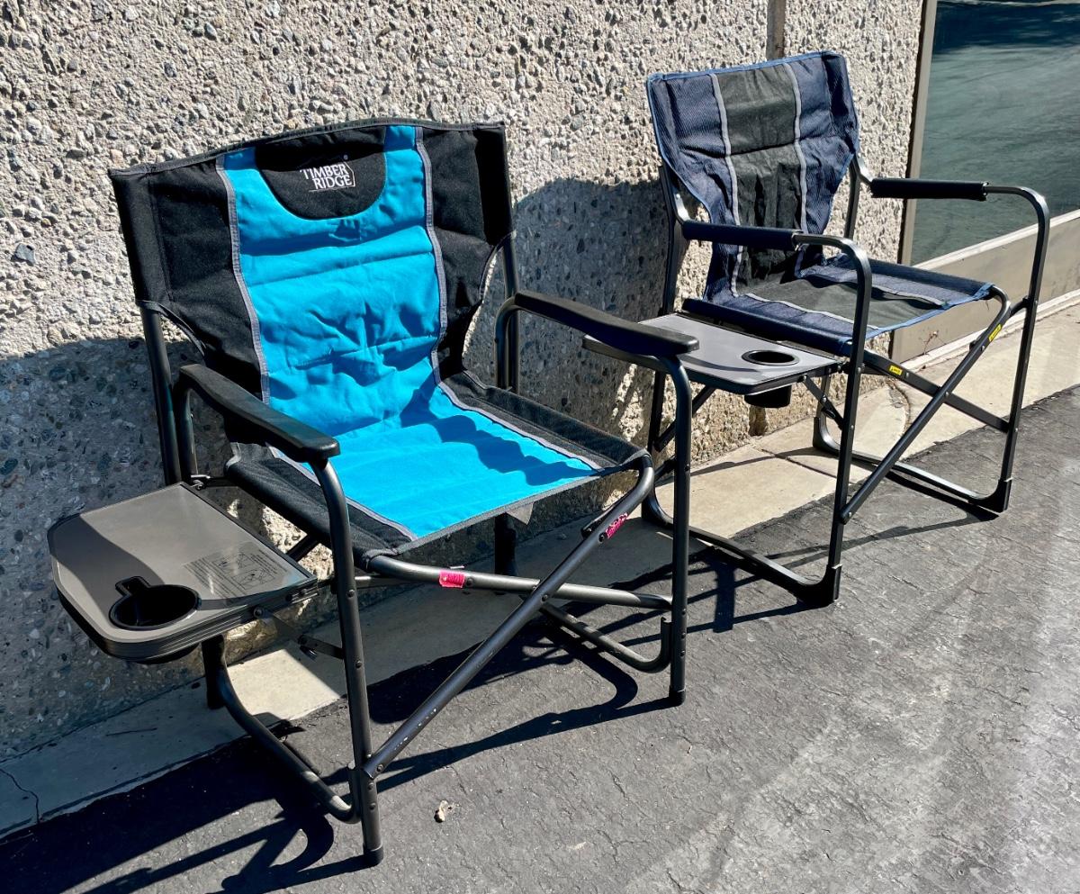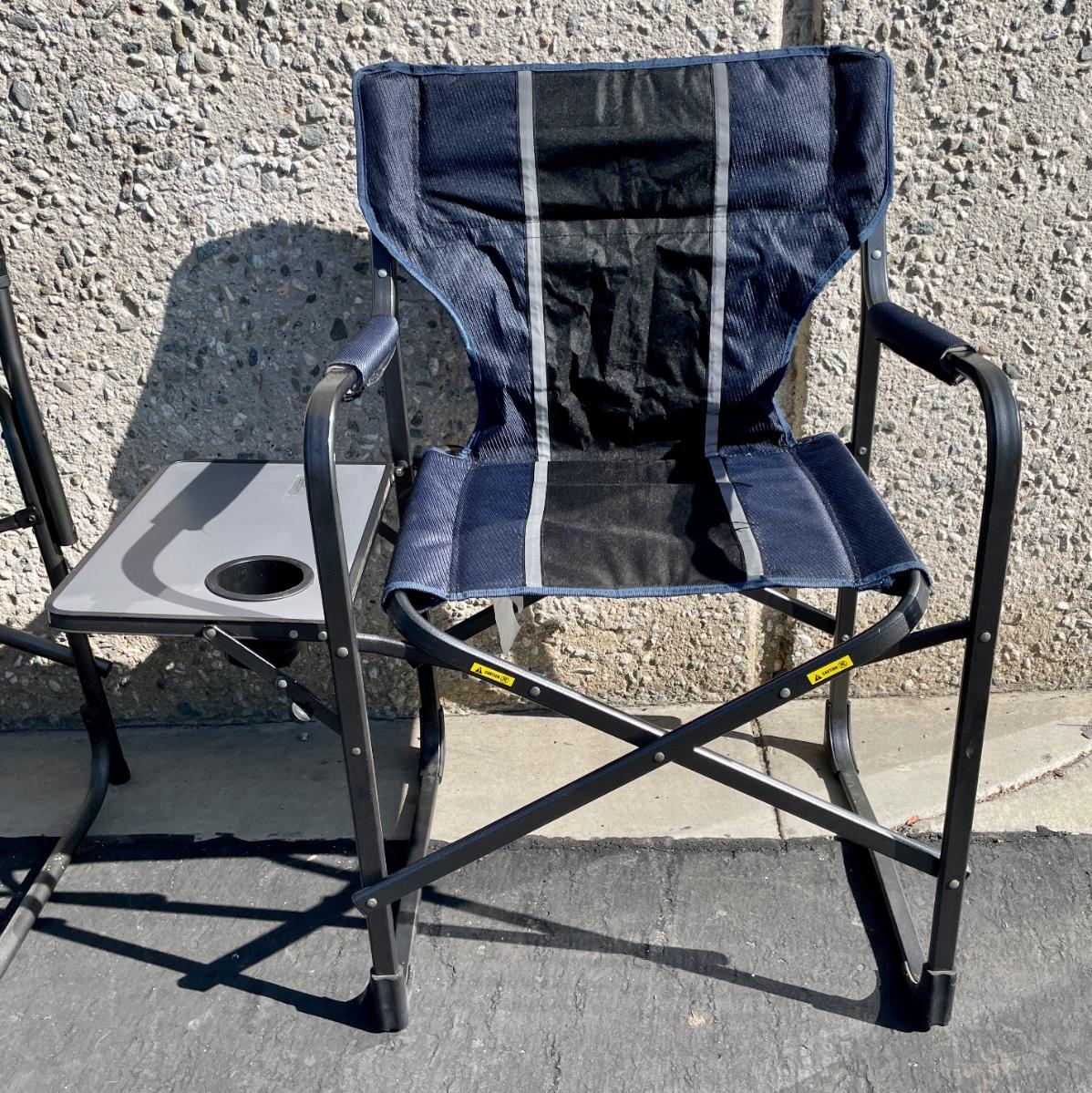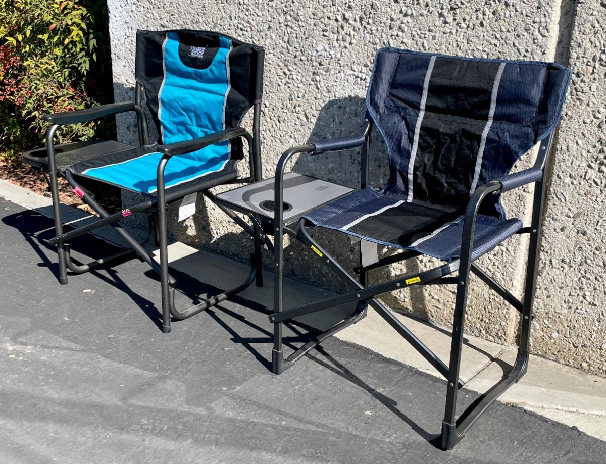 Pair of Lightweight Outdoor Camping Chairs, Portable Directors Chair with Side Table for Camping, Lawn, Picnic and Fishing. Both in very good, near-new condition.