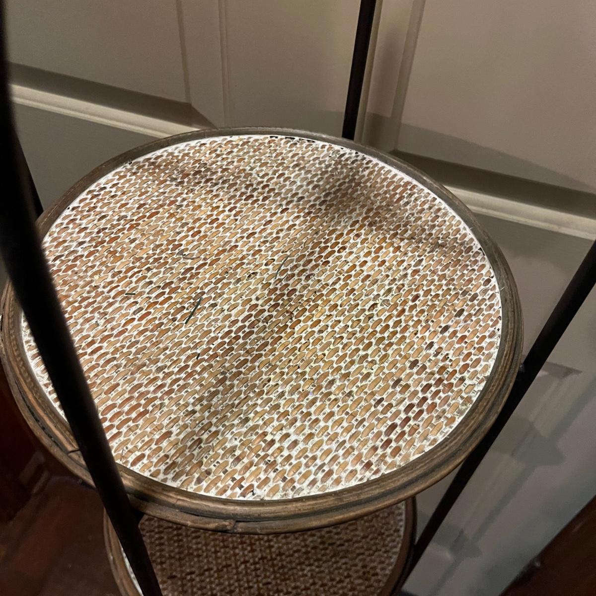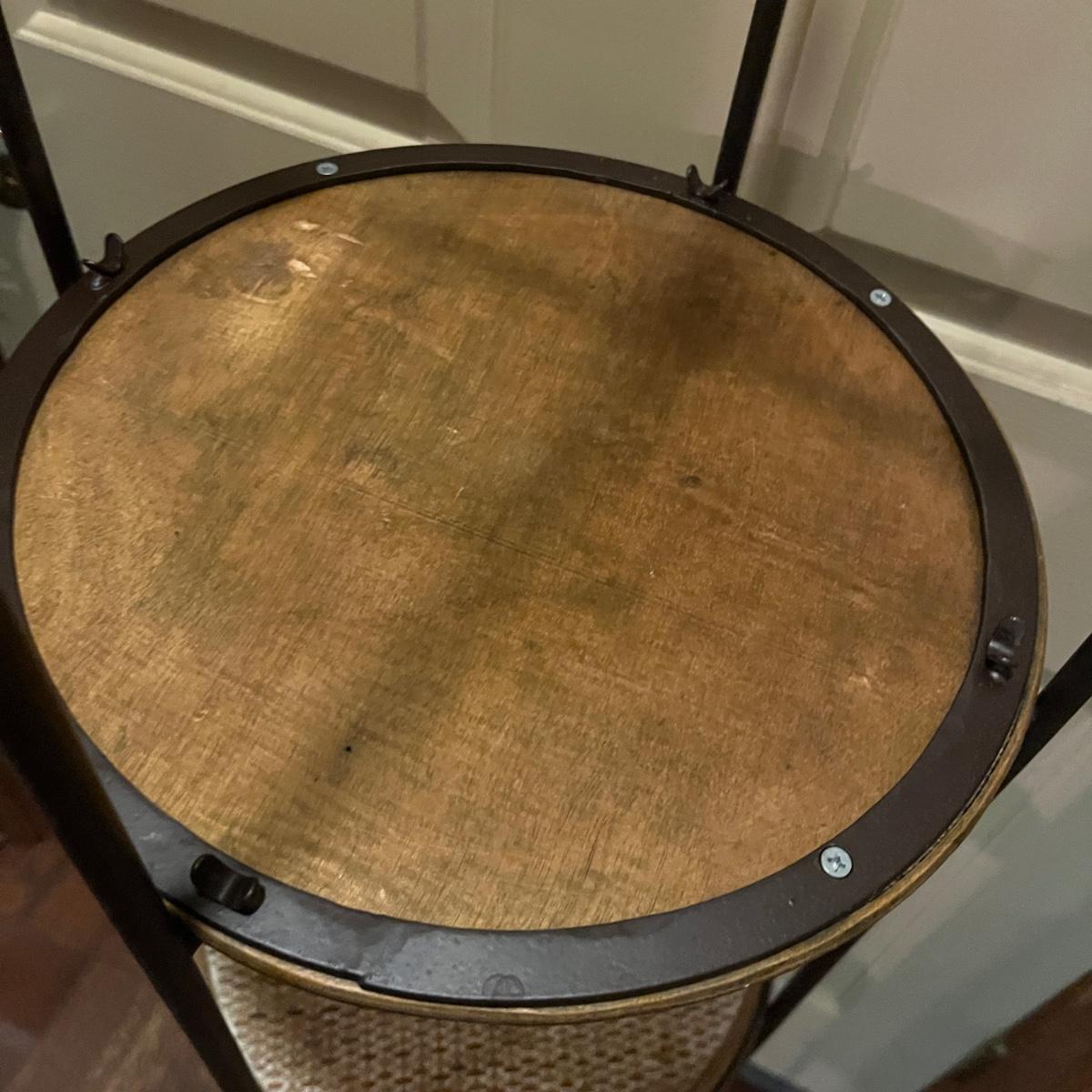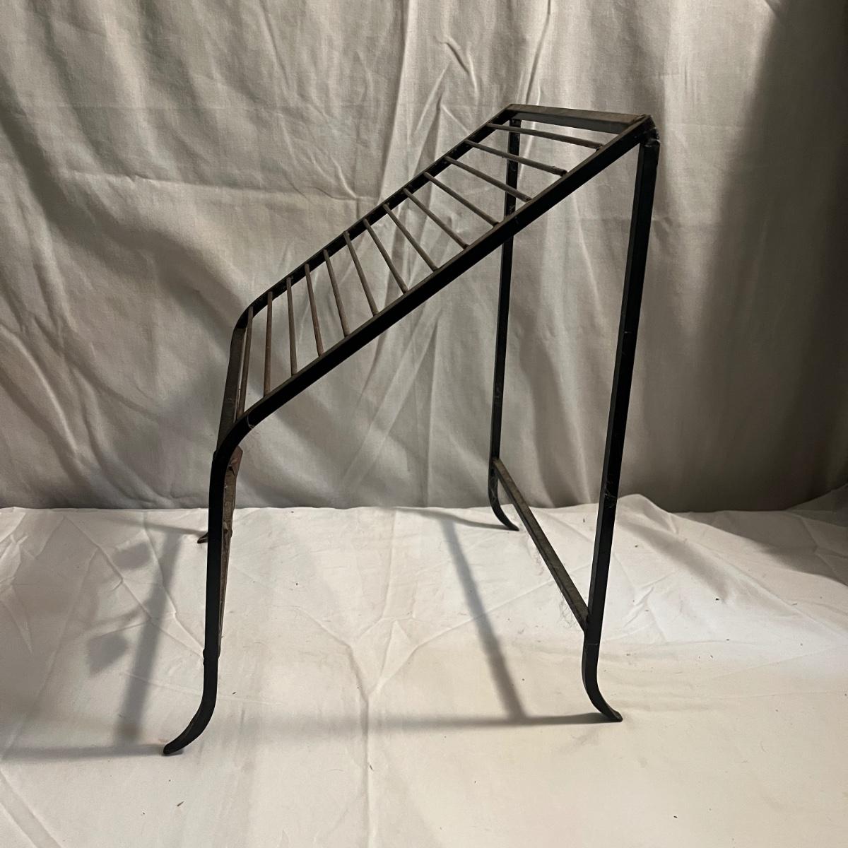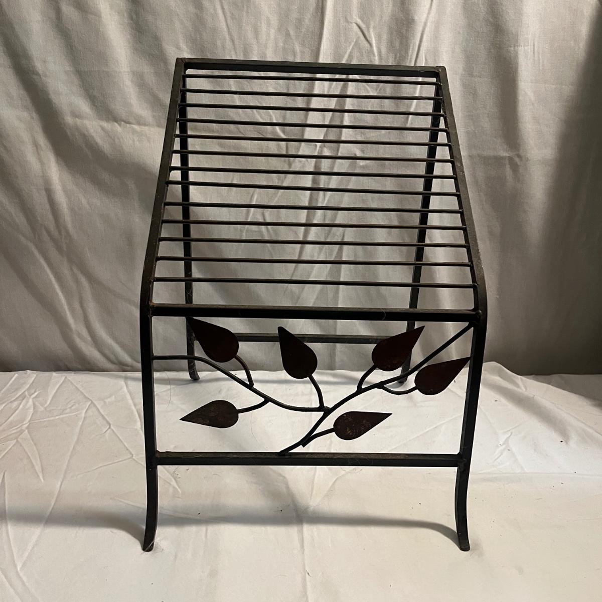 Lot includes a metal folding four tier shelf, metal shelf and a metal magazine rack. Folding shelf measures 13.6” x 13.5” x 59”H when open and magazine rack measures 13” x 14” x 18”H.