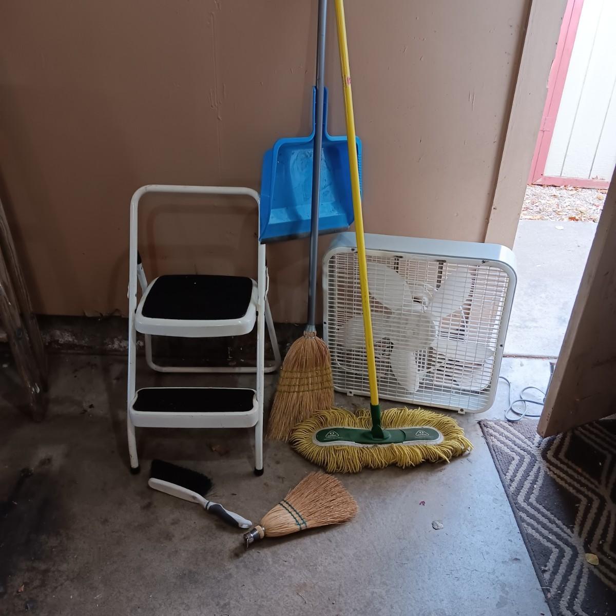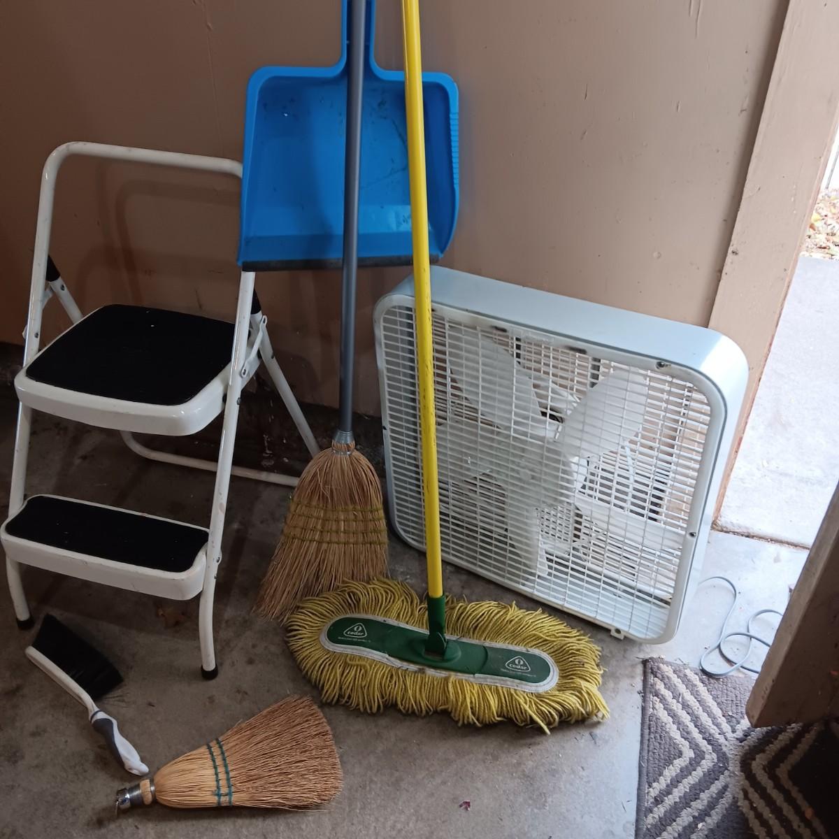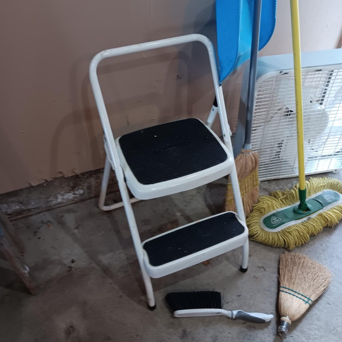 FOLDING STEP STOOL, BOX FAN AND FLOOR CARE