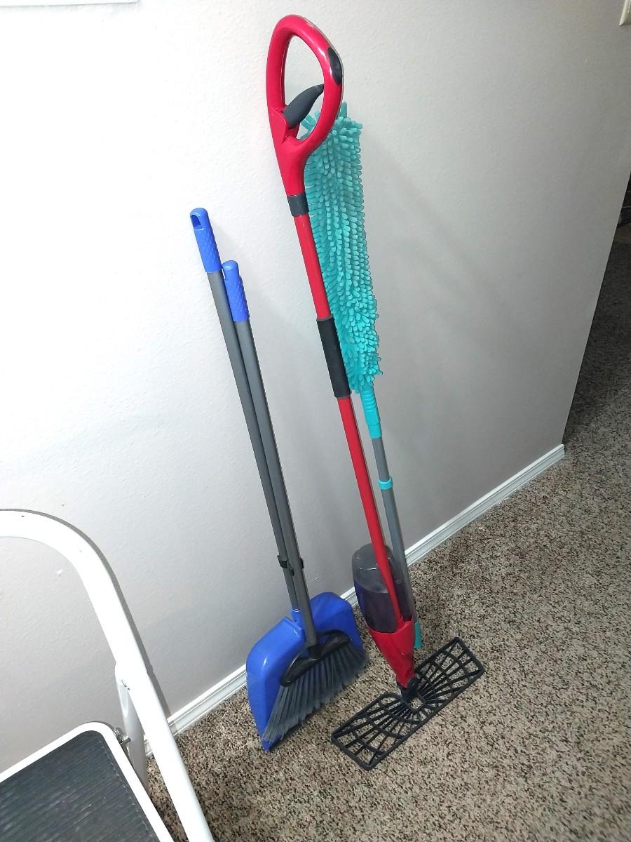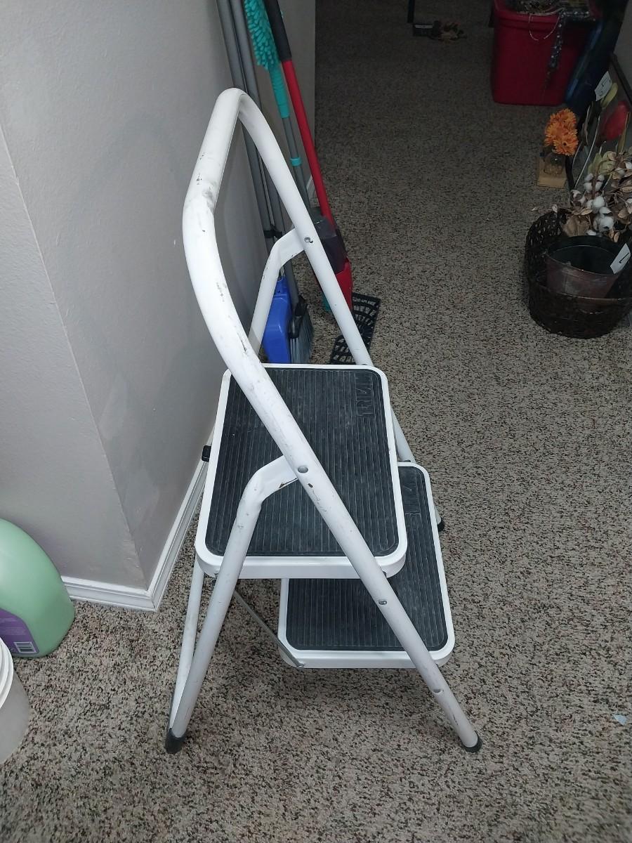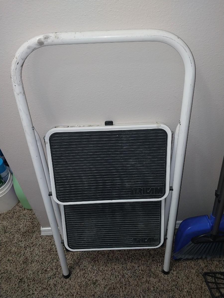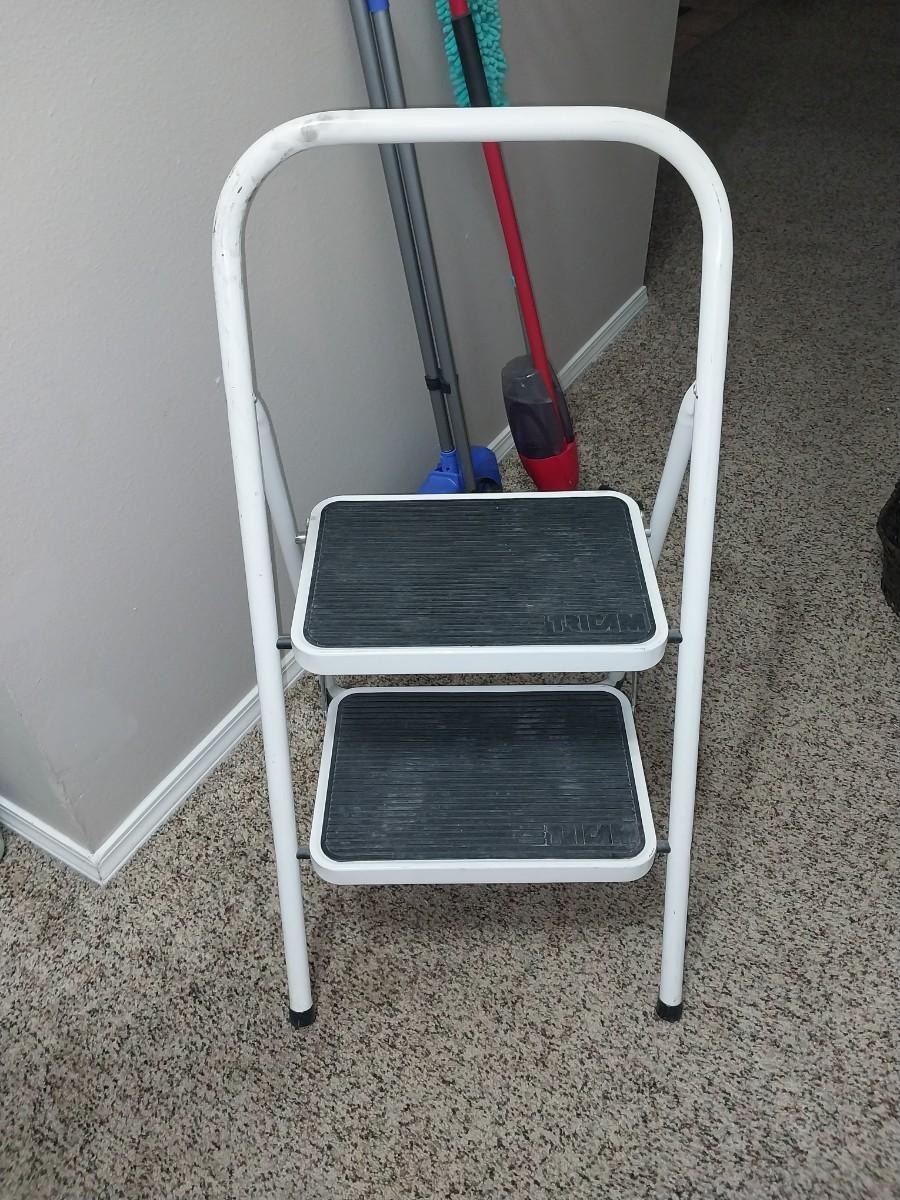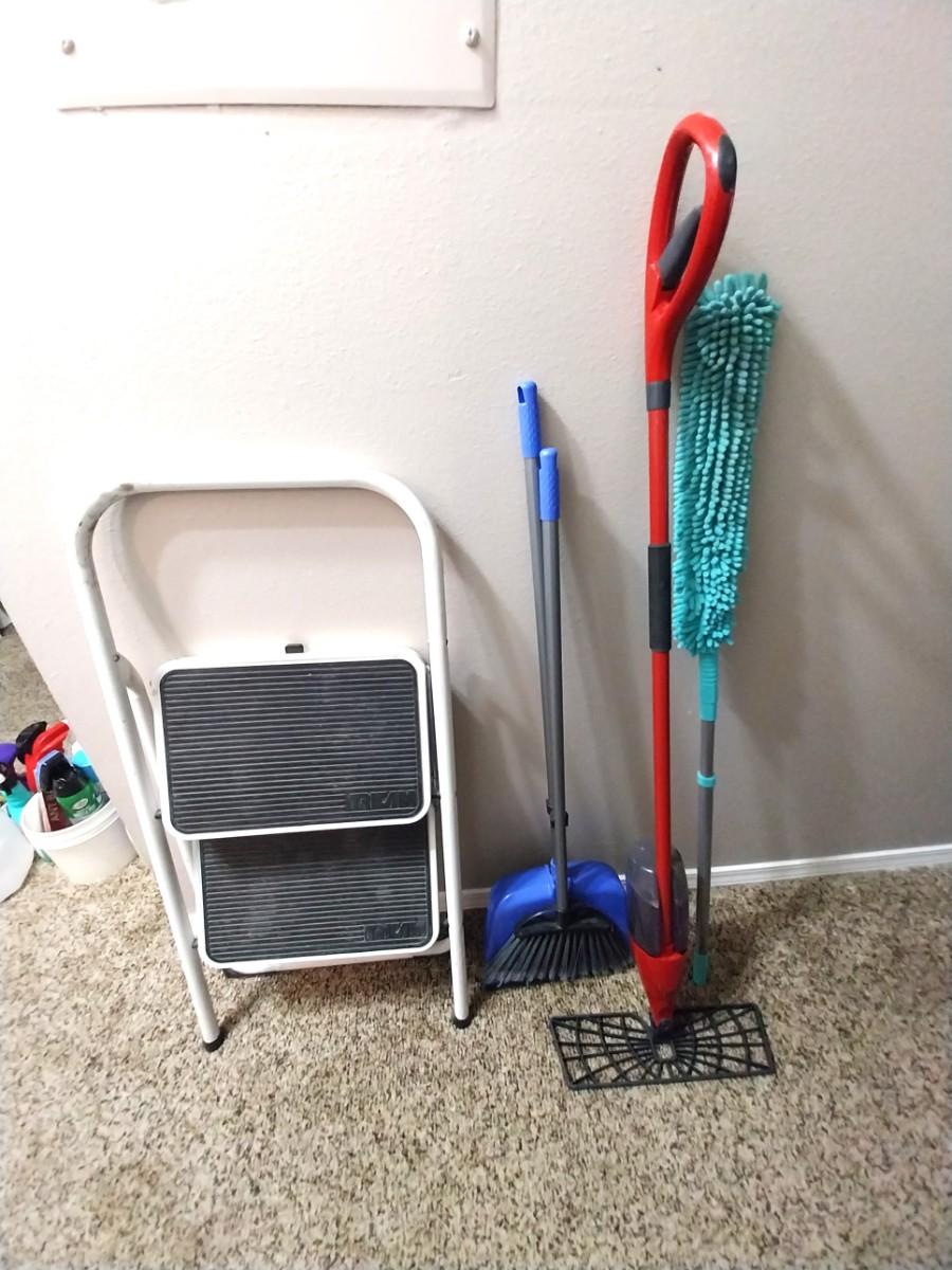 FOLDING STEP STOOL & FLOOR CARE ITEMS